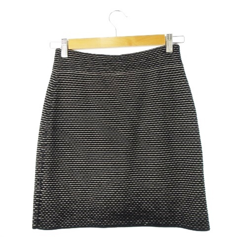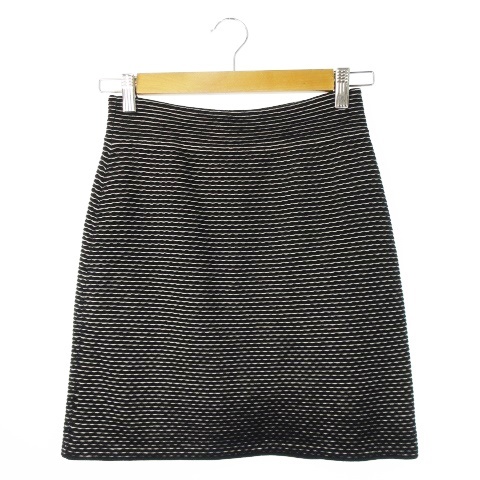 セオリー Theory スカート タイト ミニ ストレッチ 立体編み エンボス ボーダー S 黒 ブラック /CK25 レディース