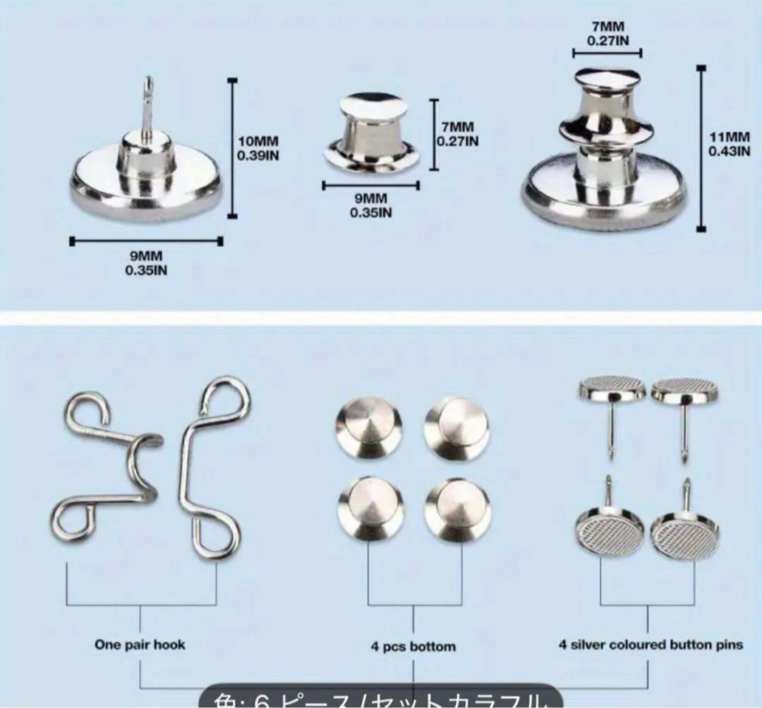 ピン(留め具)×8、フタ(留め具)×8、フック×4