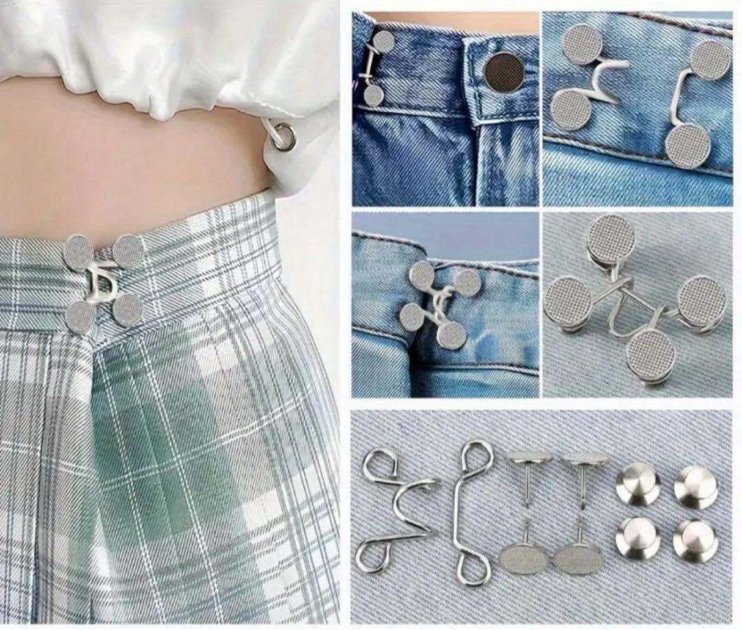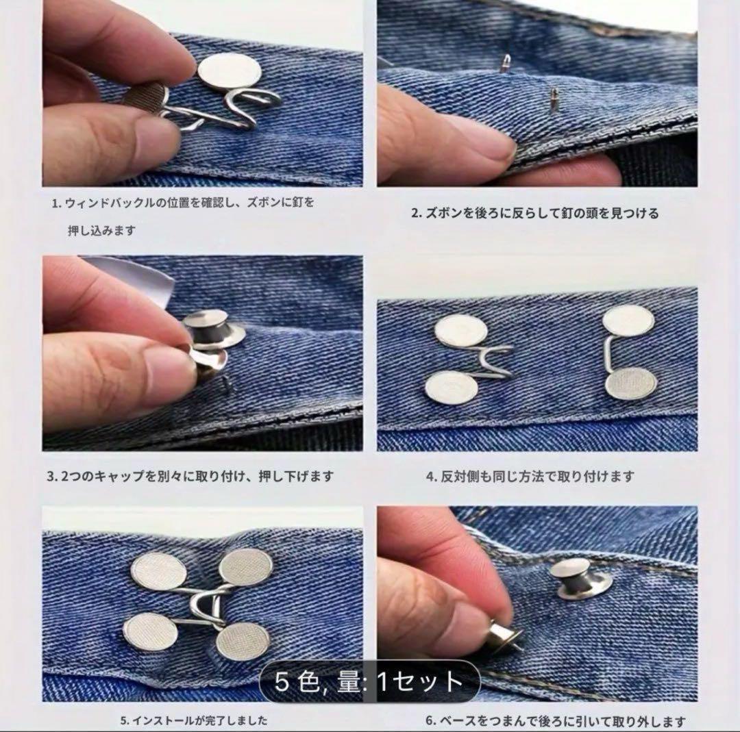 ダイエット後やサイズが合わなくなったデニムスカートやジーンズのウエストを簡単に調整できる便利なバックルセットです。ウエストを絞ることでスタイルアップが叶い、ハイウエストの脚長効果も期待できます。シンプルでおしゃれなシルバーデザインは、見えても違和感なくどんなファッションにもマッチします。