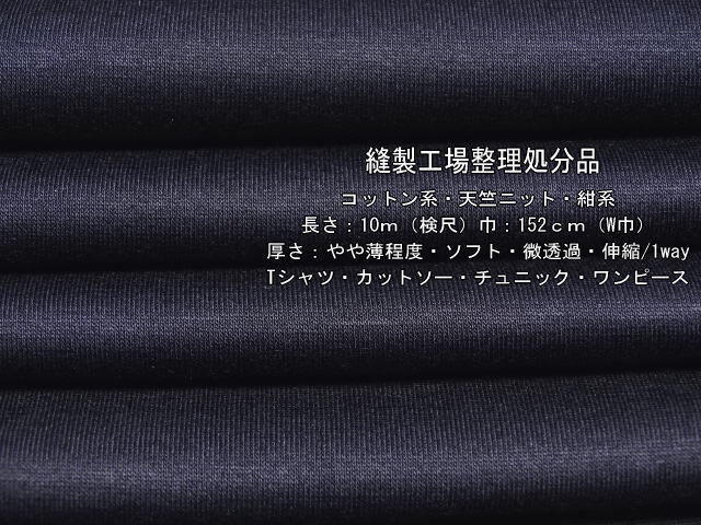 | コットン系 天竺ニット やや薄 ソフト 微透過 紺系 10m W巾 | |