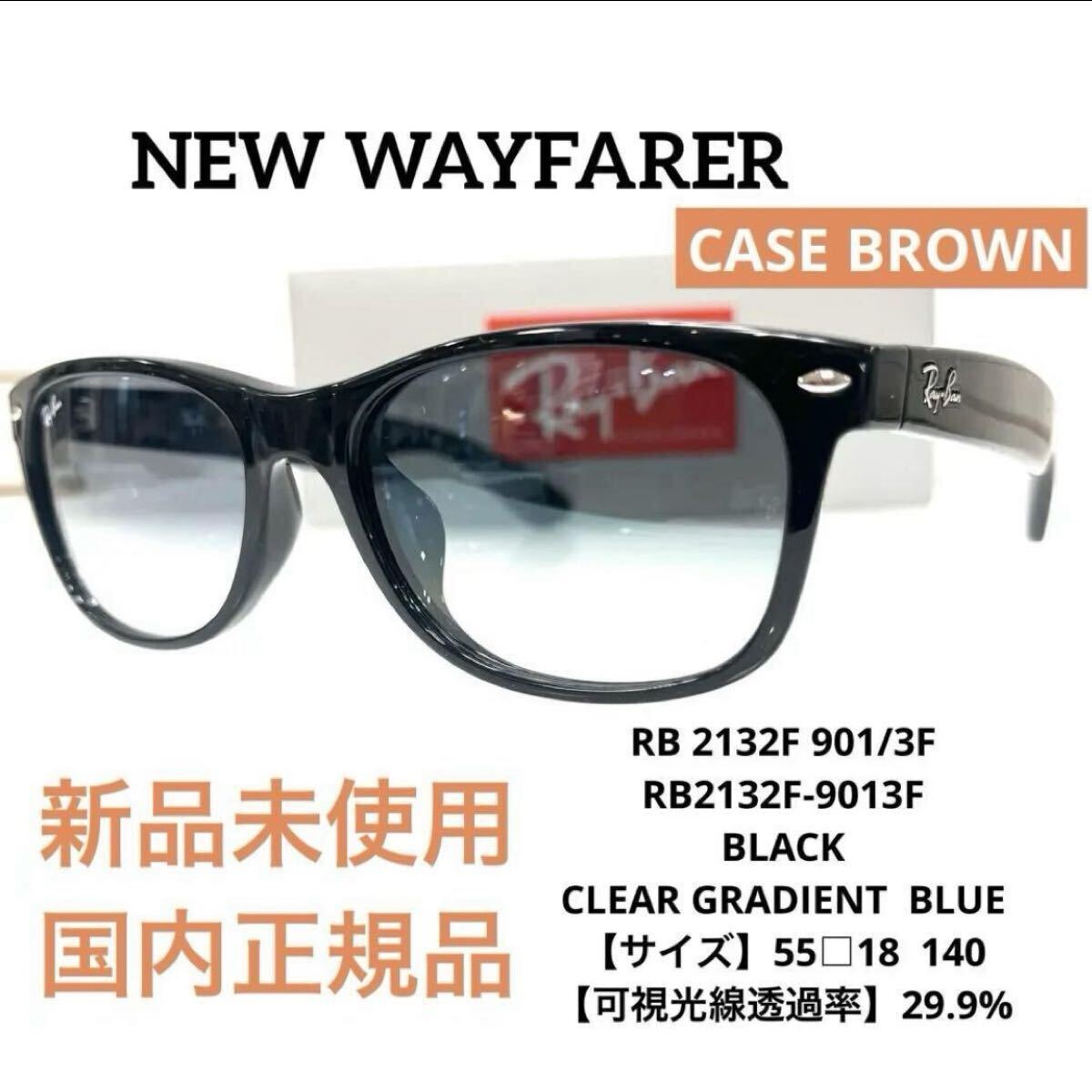 ※値下げは致しておりません。 国内正規品レイバンサングラスになります。 ルックスオティカジャパン正規品 アジアンフィット、男女兼用人気カラー RayBan レイバン 国内正規品 アジアンフィット NEW WAYFARER 【品番】RB 2132F 901/3F RB2132F-9013F 【フレームカラー】ブラック BLACK 【レンズカラー】 クリアグラディエントブルー CLEAR GRADIENT BLUE 【サイズ】55□18 140 【可視光線透過率】29.9% 【付属品】本体・箱・ケース・メガネ拭き・保証書(未記入)付属説明書