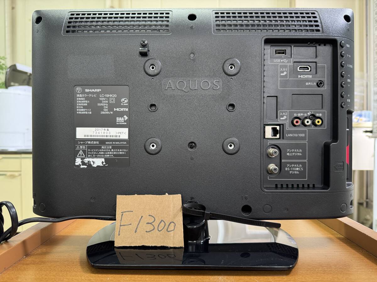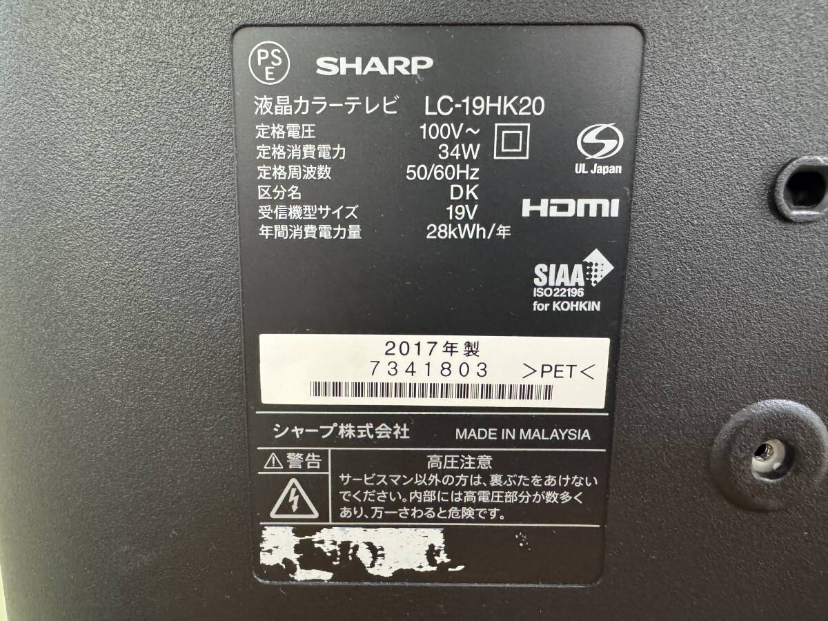 19型 シャープ AQUOS LED 液晶テレビ 2017年製 LC-19HK20 管理番号F1300