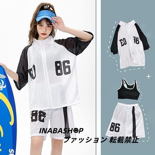 可愛い 半袖 メッシュトップス付き 水着 体型カバー 3点セット ビキニ タンキニ レディース スポーティ水着 セパレート 大人 スイムウェア