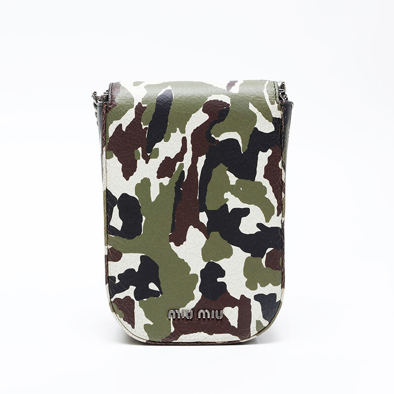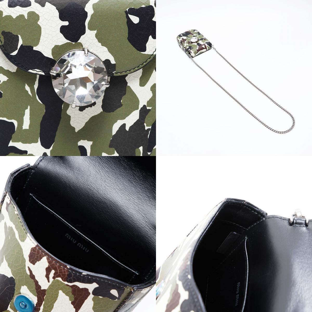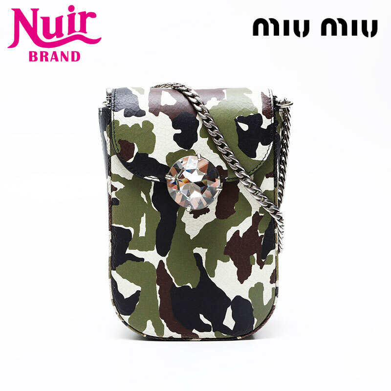 ミュウ ミュウ Miu Miu ショルダーバッグ 迷彩 クリスタル ポシェット フォンケース グリーン