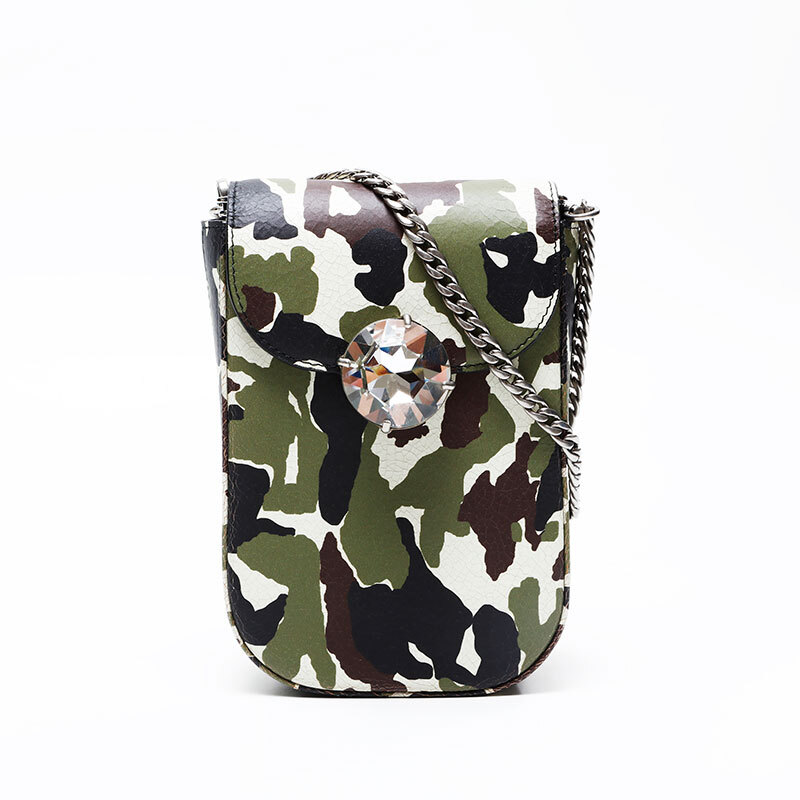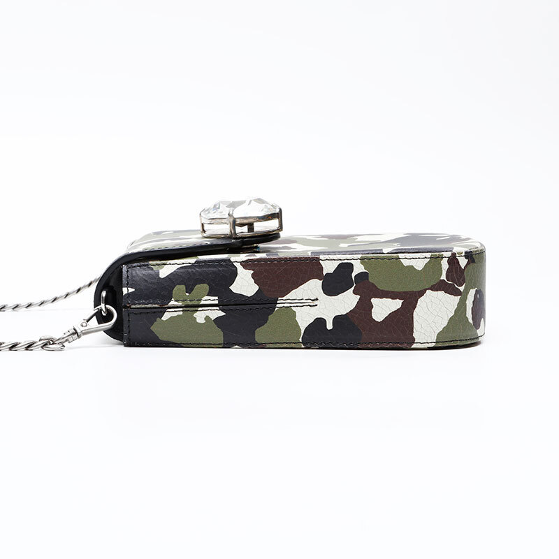 極美品 Miu Miu 迷彩 クリスタル ポシェット フォンケース ショルダーバッグ グリーン