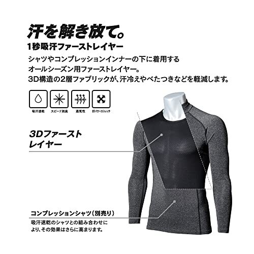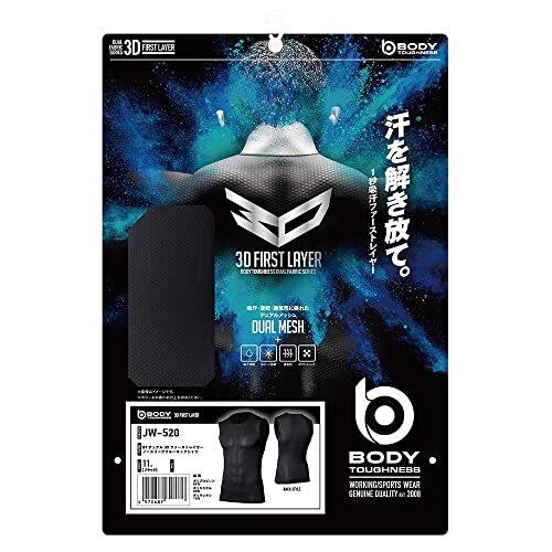 スポーツ・ブラック L JW-520・・Size:LColor:ブラックPatternName:1枚・外側は吸汗性に優れたポリエステルを使用・肌面は水分を含まないポリプロピレンを使用・異素材の組み合わせにより、高い吸汗性と速乾性を可能に・大きめのメッシュ編みの生地に薄いポリエステルを組み合わせた3D構造・シャツやコンプレッションインナーの下に着用し、汗冷えやベタ付きを軽減サイズ:L 胸囲(cm):96-104 身長(cm):175-185 色:ブラック 性能評価(5段階) コンプレッション性:3 ストレッチ性:4 吸汗性:5 速乾性:4 *自社における比較です。目安であり感じ方はお客様のよって異なります。
