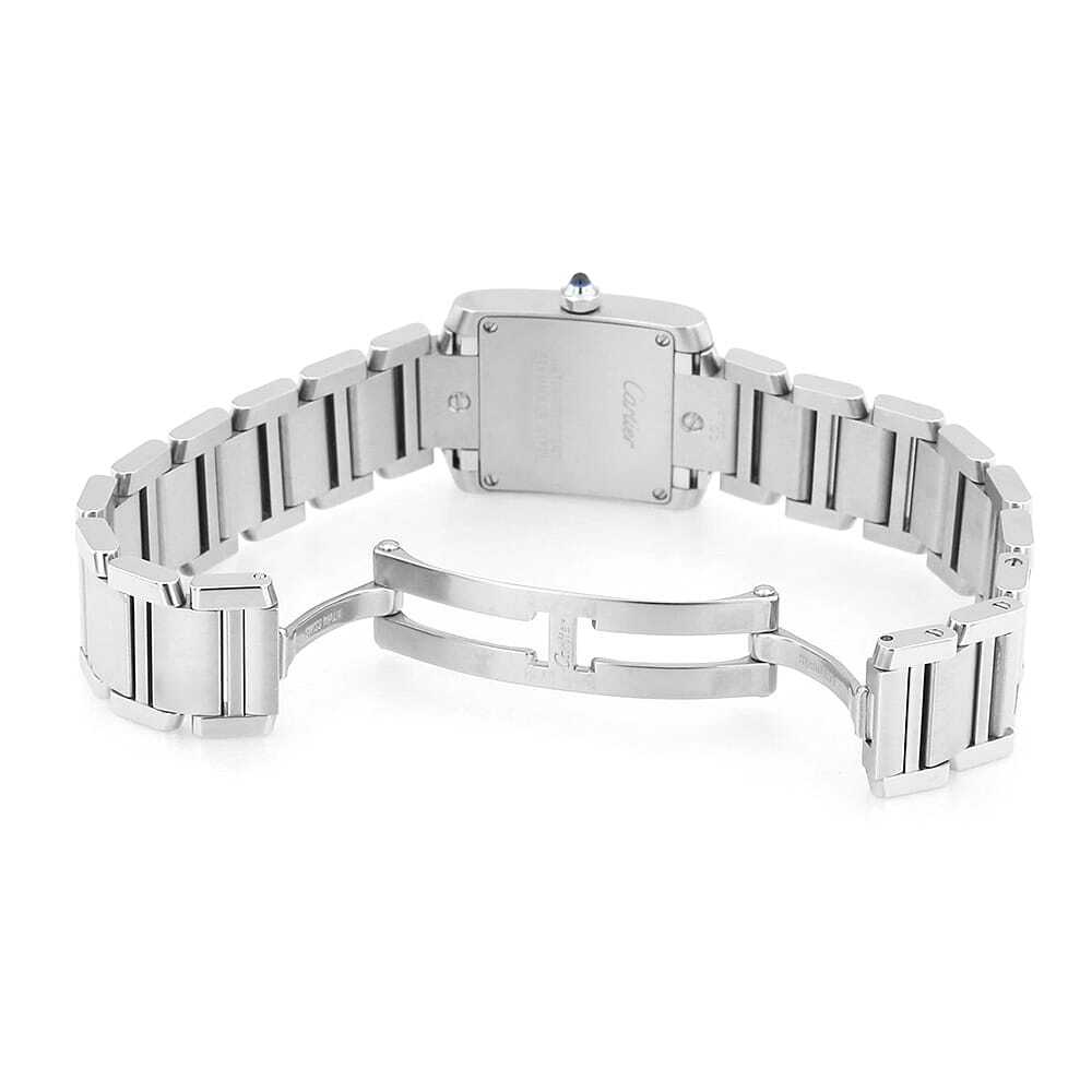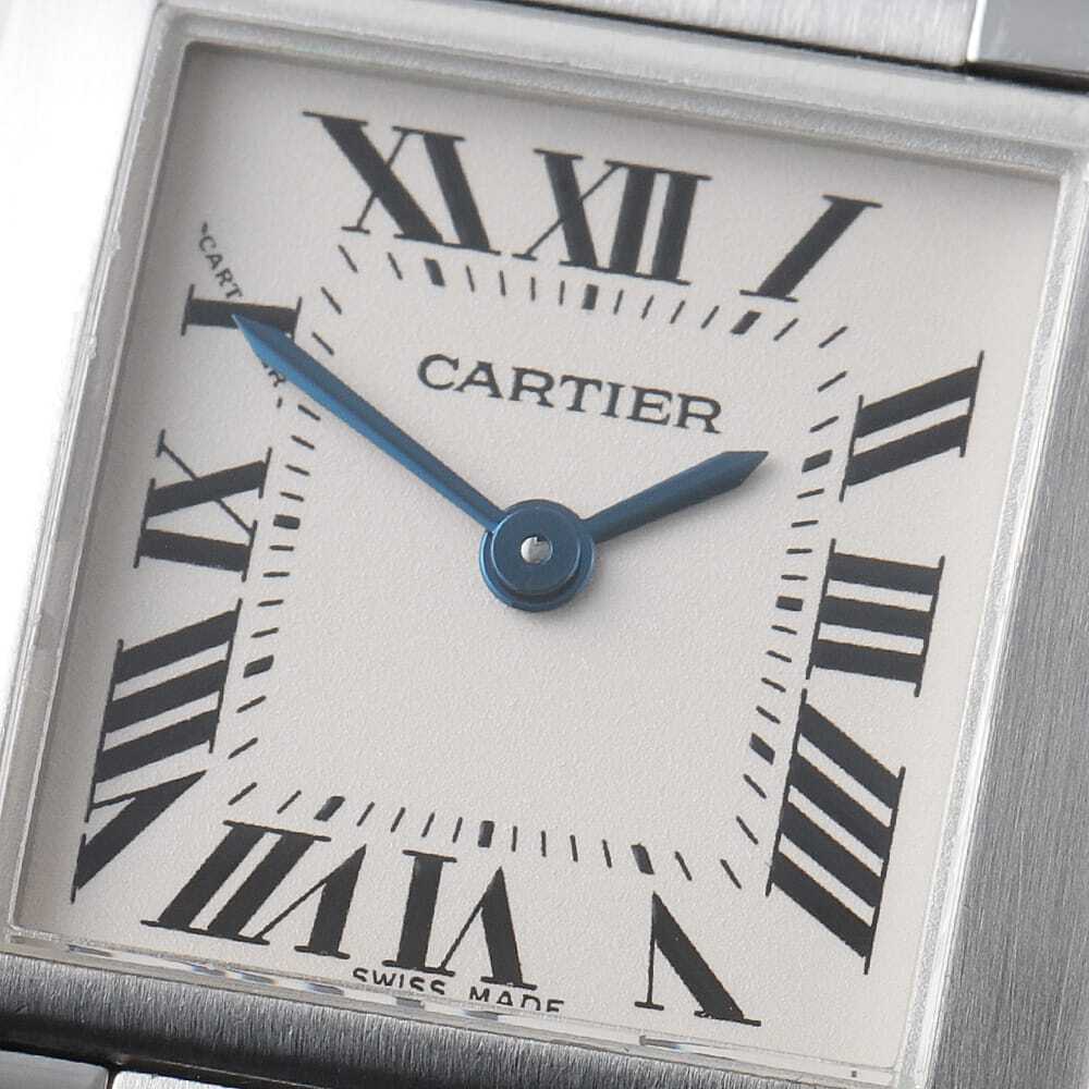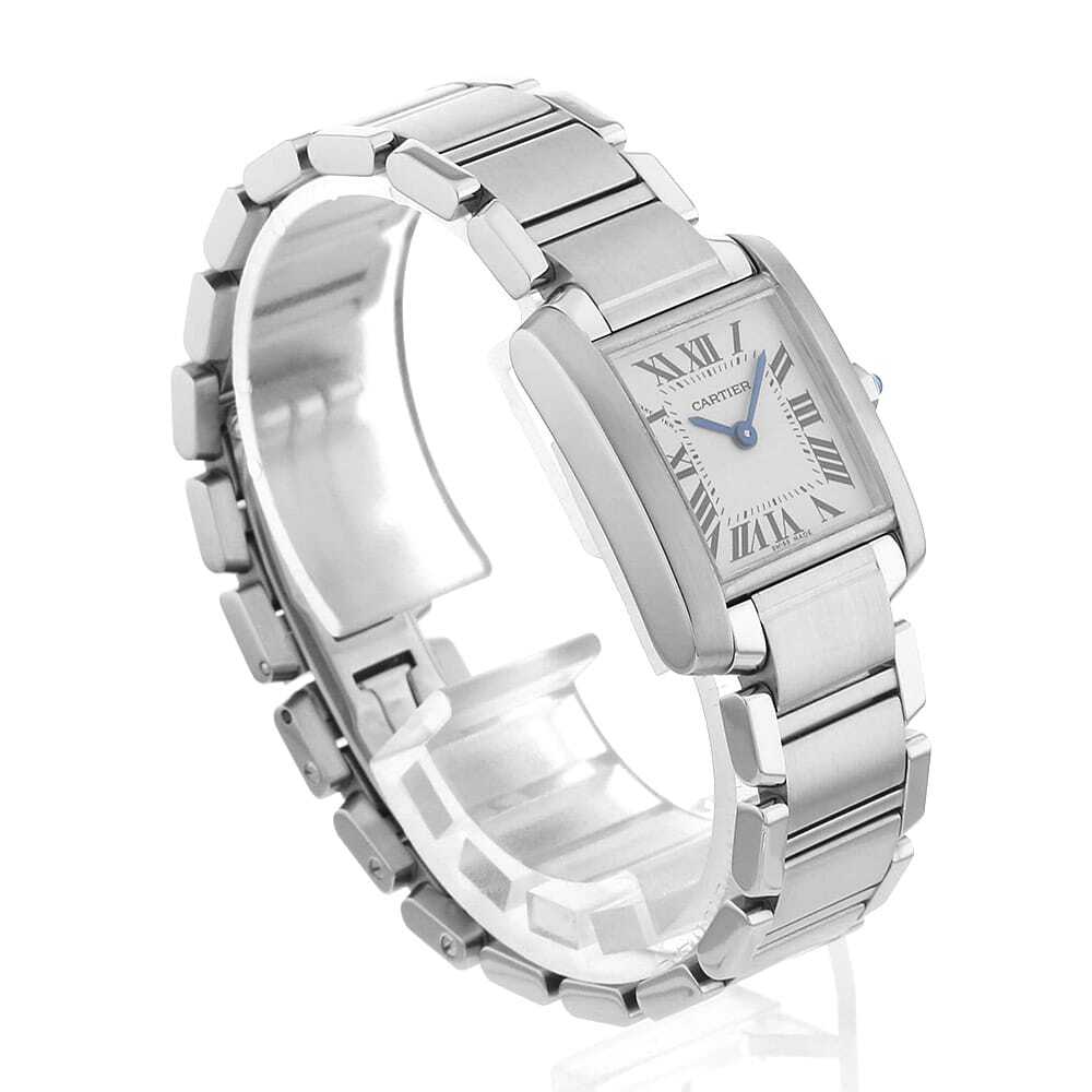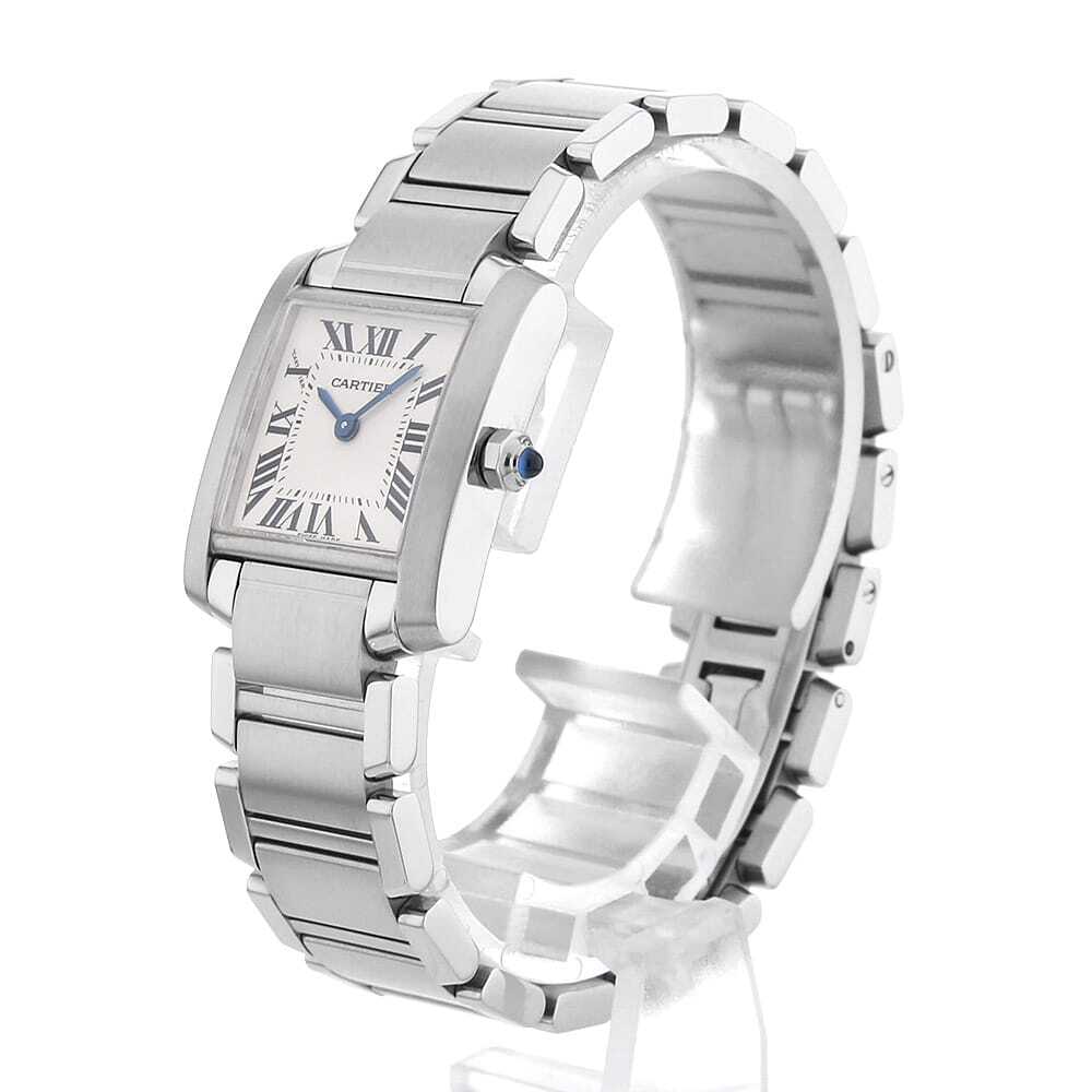 モデル情報 | 戦車のキャタピラからインスピレーションを得てデザインされ「タンク」の名が付けられたコレクションです。多くのモデルチェンジを繰り返しながら生まれた"タンクフランセーズ"は、よりファッショナブルでデザイン性に富んだモデルとして1997年に誕生しました。愛らしくフェミニンな印象を与えるスクエアケースが特徴で、人気の定番モデルとしてラインナップされ続けています。10時のローマンインデックスの一部に「CARTIER」の文字が隠されており、細部にまでこだわりが感じられる逸品です。 |