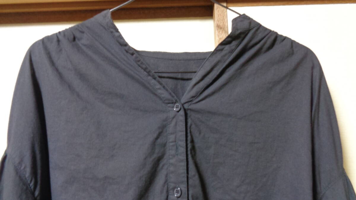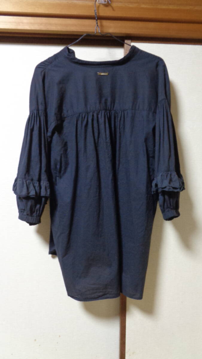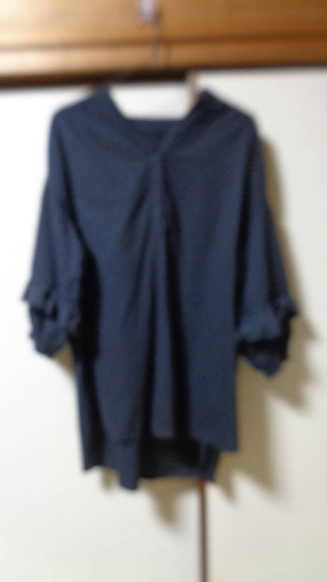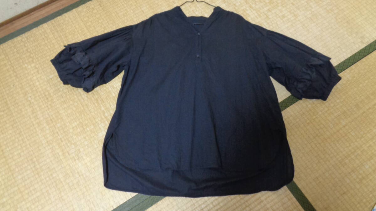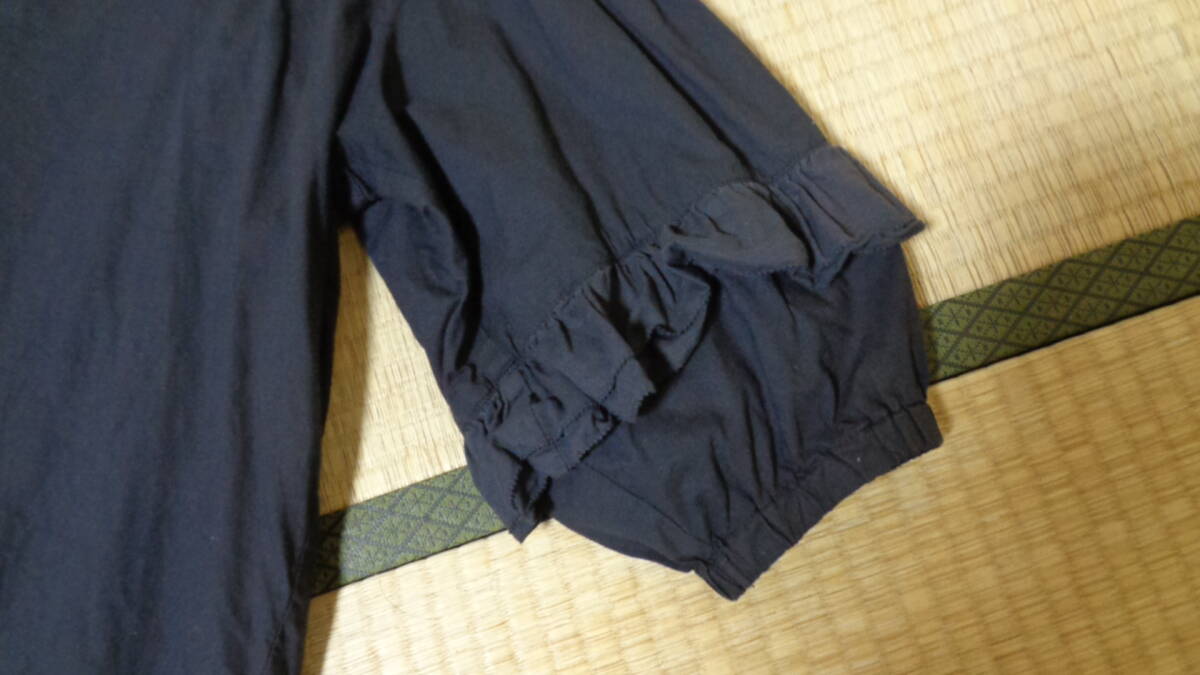 送料込み・SMILE LAND ニッセン 綿100% バルーン・フリルスリーブ 黒ブラウス 大きいサイズ LL