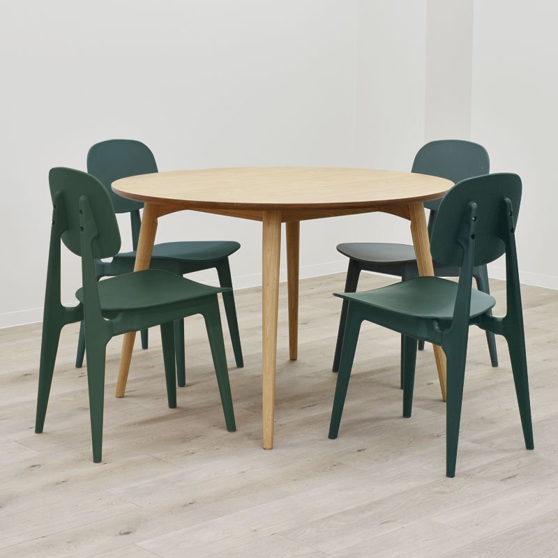 テーブル:ナチュラル/チェア:グリーンの5点セットの販売ページです。