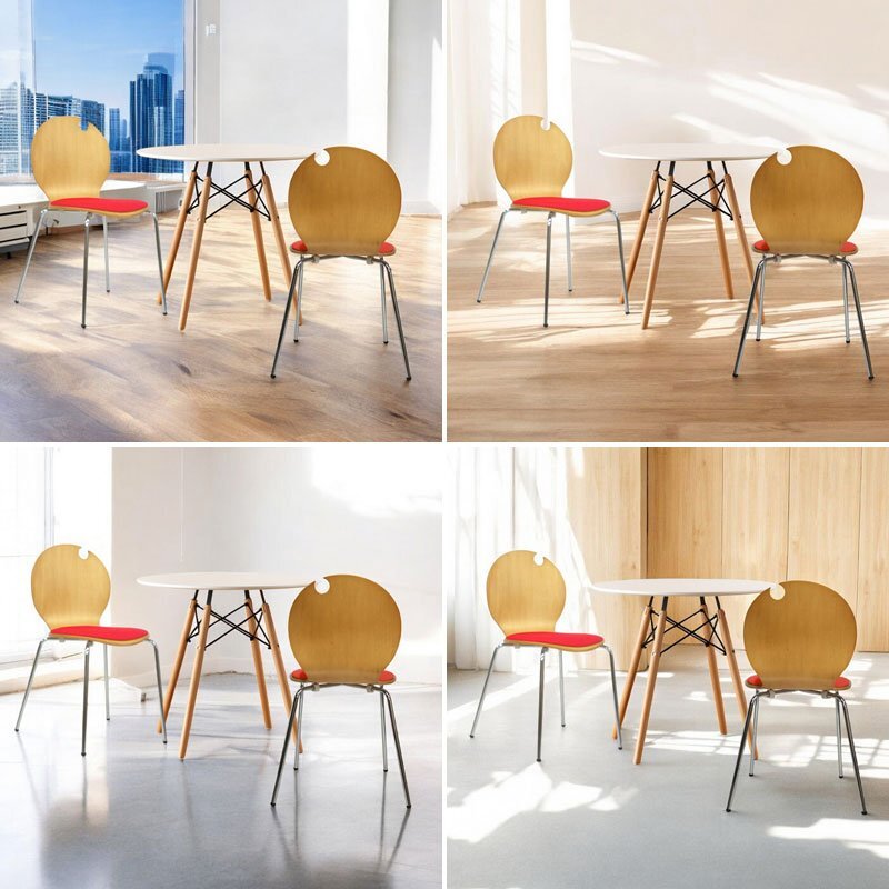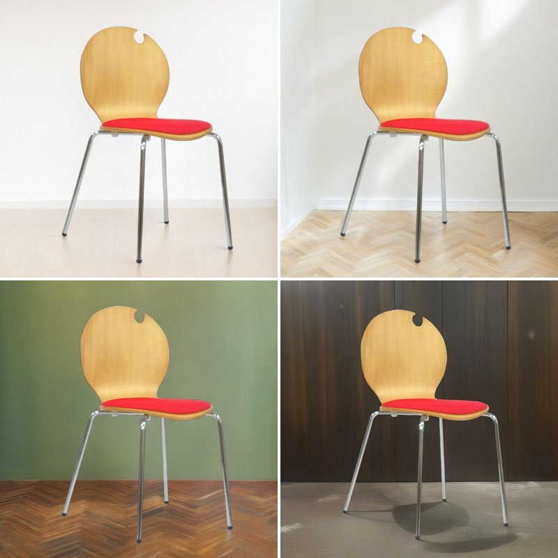 ミッドセンチュリーテイストの曲木とクッションのスタッキングチェア