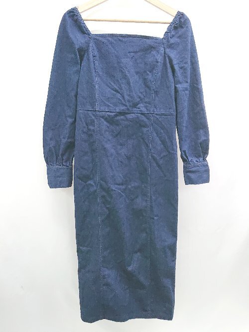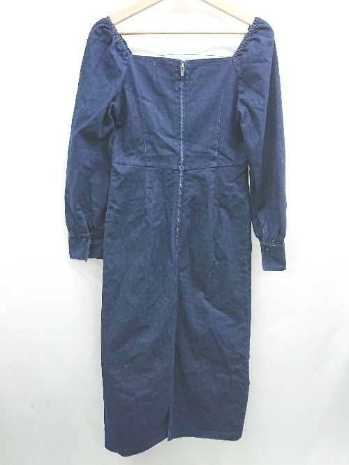 ◇ Θ flowere 可愛い系 長袖 膝下丈 ワンピース サイズF ネイビー系 レディース E
