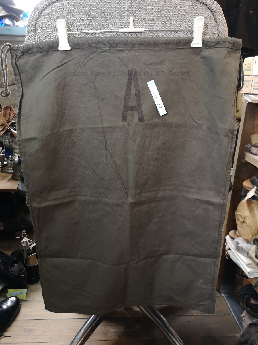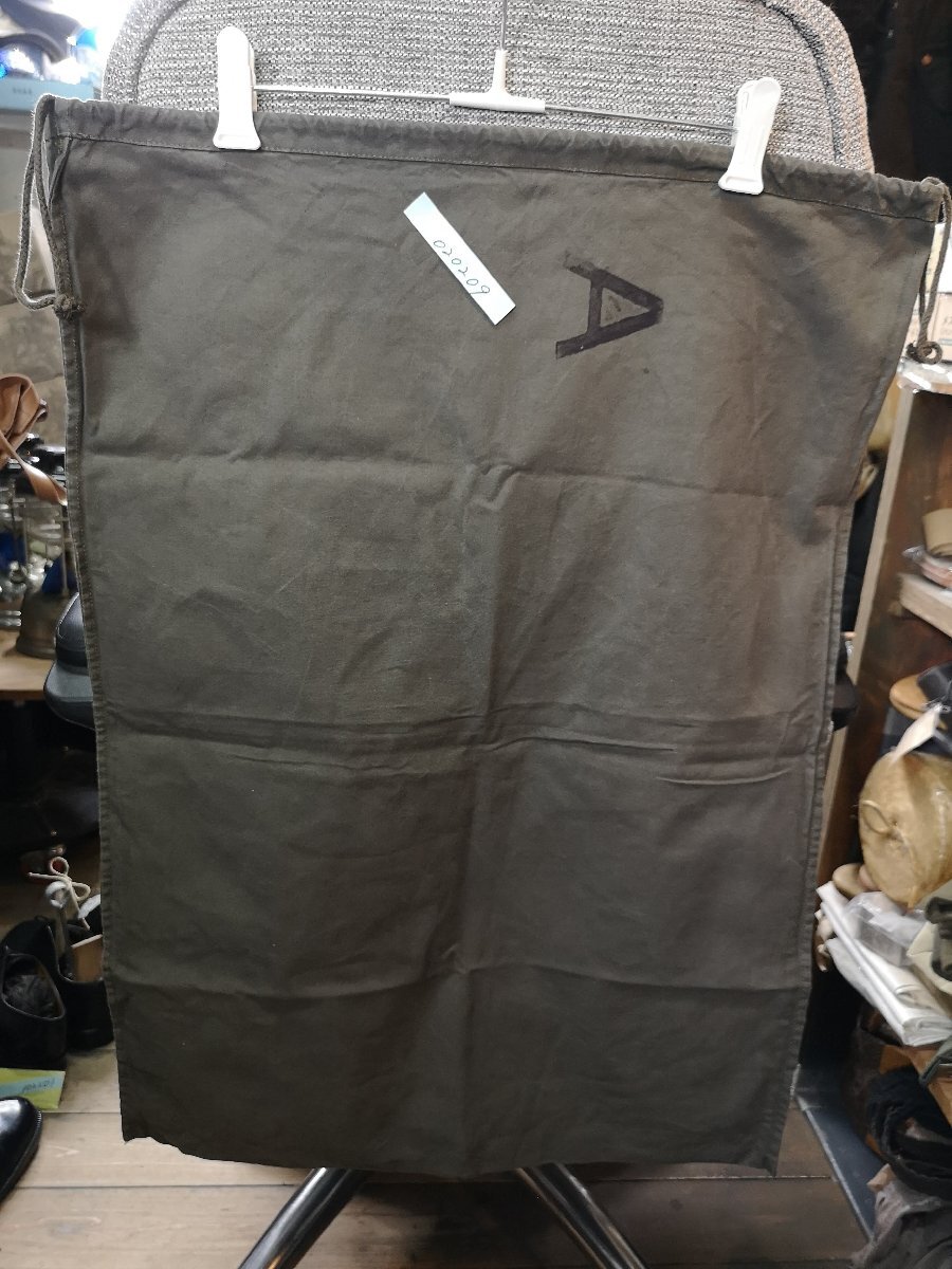 1枚目の写真は流用です。ドイツ軍にて採用されていたランドリーバッグです。 口を紐で絞る巾着袋タイプの仕様になり、コンパクトなサイズ感でシューズ入れなどにも丁度良く、アウトドアなシーンにもオススメです。又、生地が若干薄手で柔らかいコットンにより、二次加工にも最適です。。 サイズは75cm×55cmほど。ユーズドで若干の傷などはご了承ください。 ネコポス便200円でお送りいたします、落札価格にプラスでお願いいたします 。