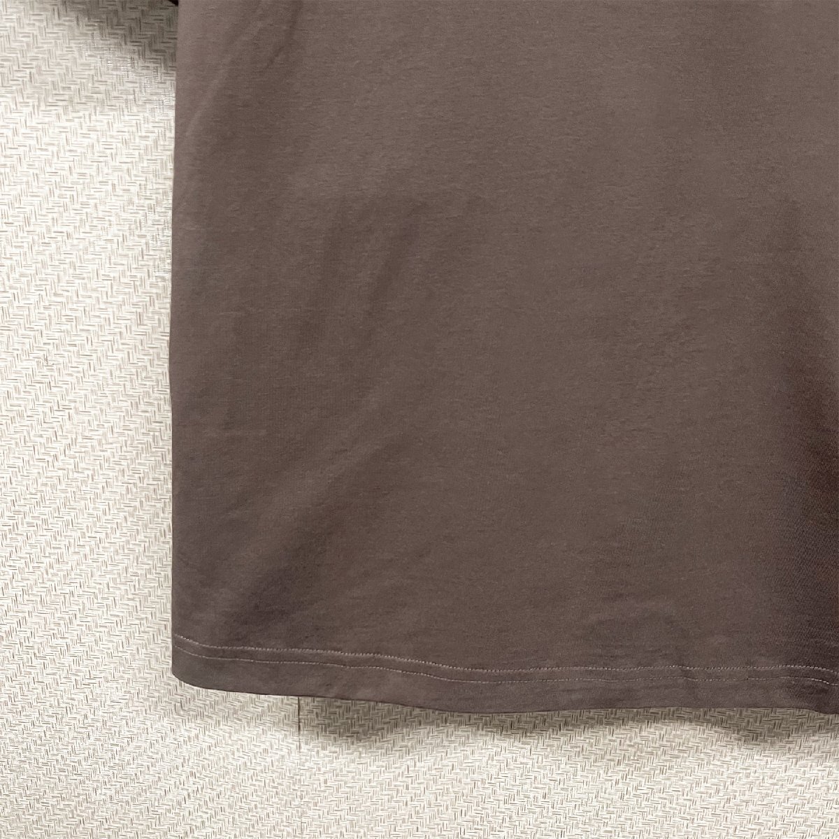 首元はシンプルなクルーネックデザインを採用しており、首回りに余裕があるため、締め付け感がなく快適です。デザイン自体は比較的にシンプルですが、バックにおしゃれな英字柄が設計されており、アメカジのスタイルに完成されます。特別な英字柄が目を引き、おしゃれ感を溢れています。