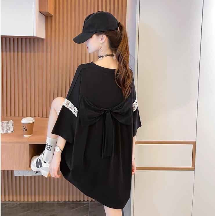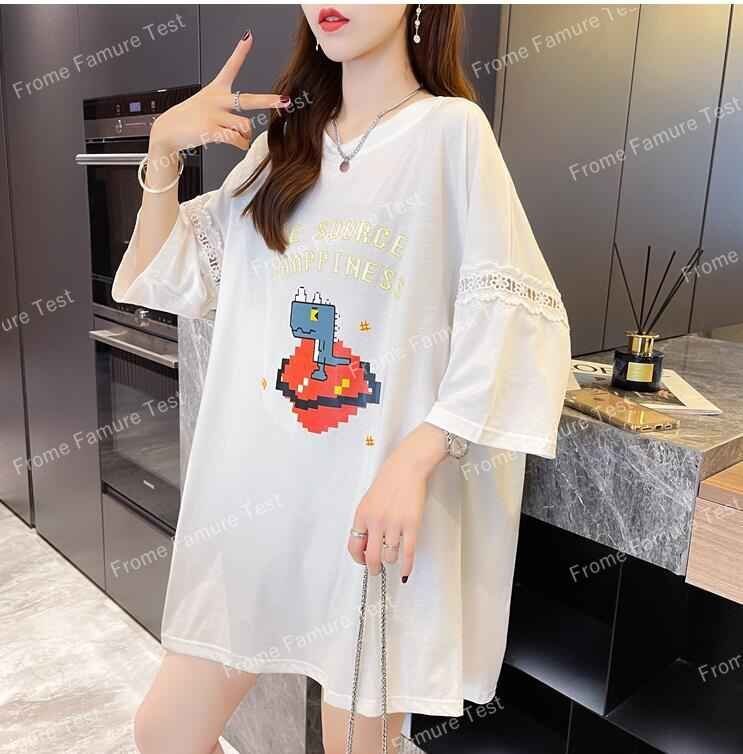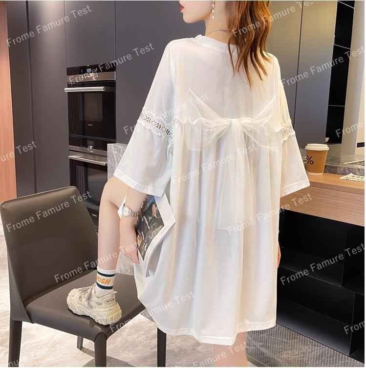 半袖Tシャツ ロング丈 韓国ファッション レディース L ホワイト