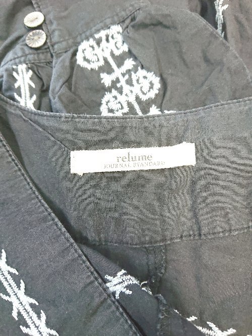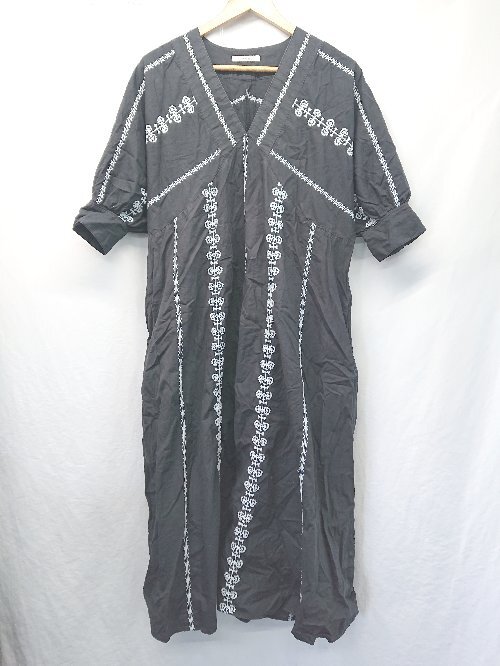 ◇ ⊂ ジャーナルスタンダード レリューム 刺繍 七分袖 膝下丈 ワンピース サイズF ブラック系 レディース E