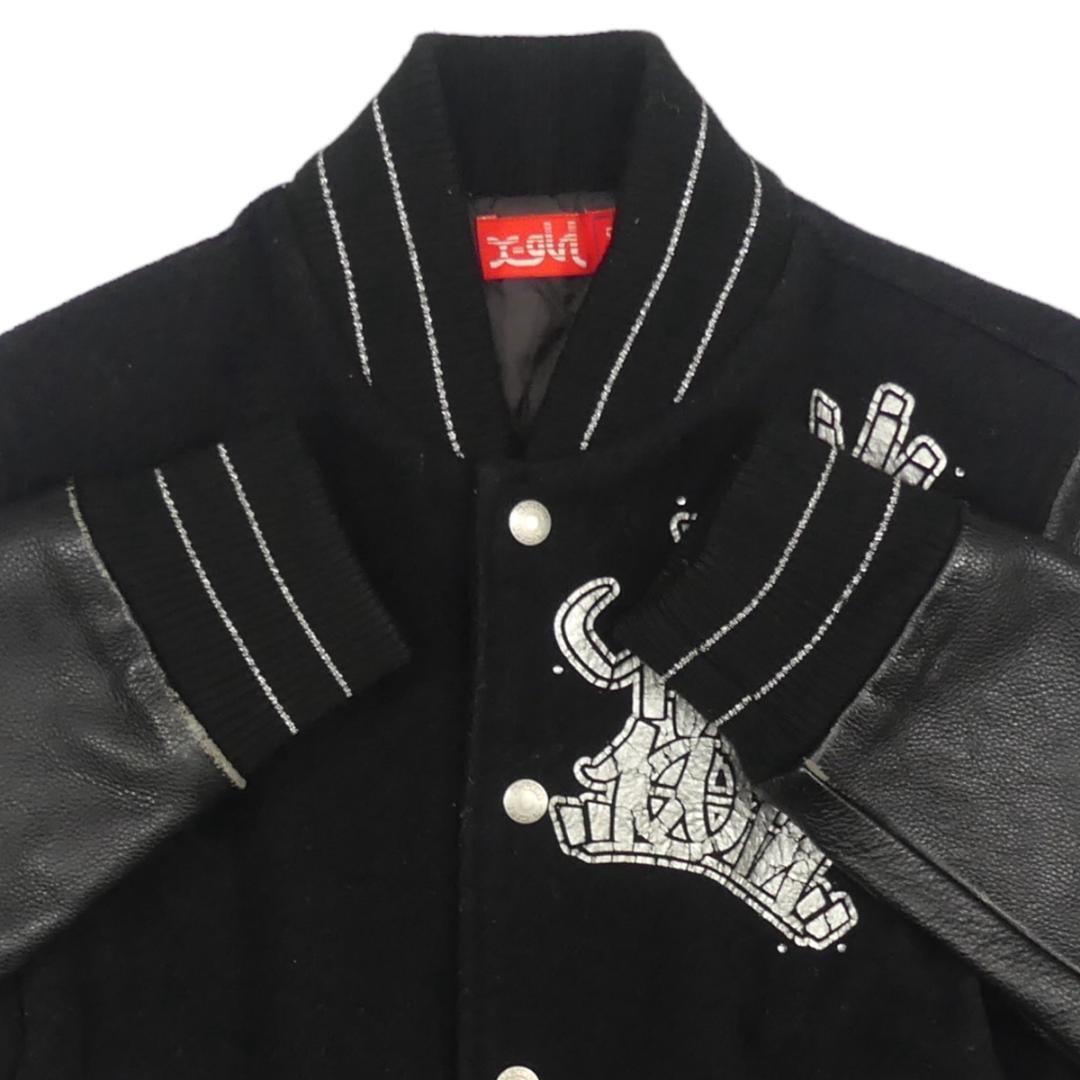 即決★X-girl★メンズS レザーアームスタジャン エックスガール 1 黒 本革 ブルゾン 本皮 ジャンパー 革ジャン