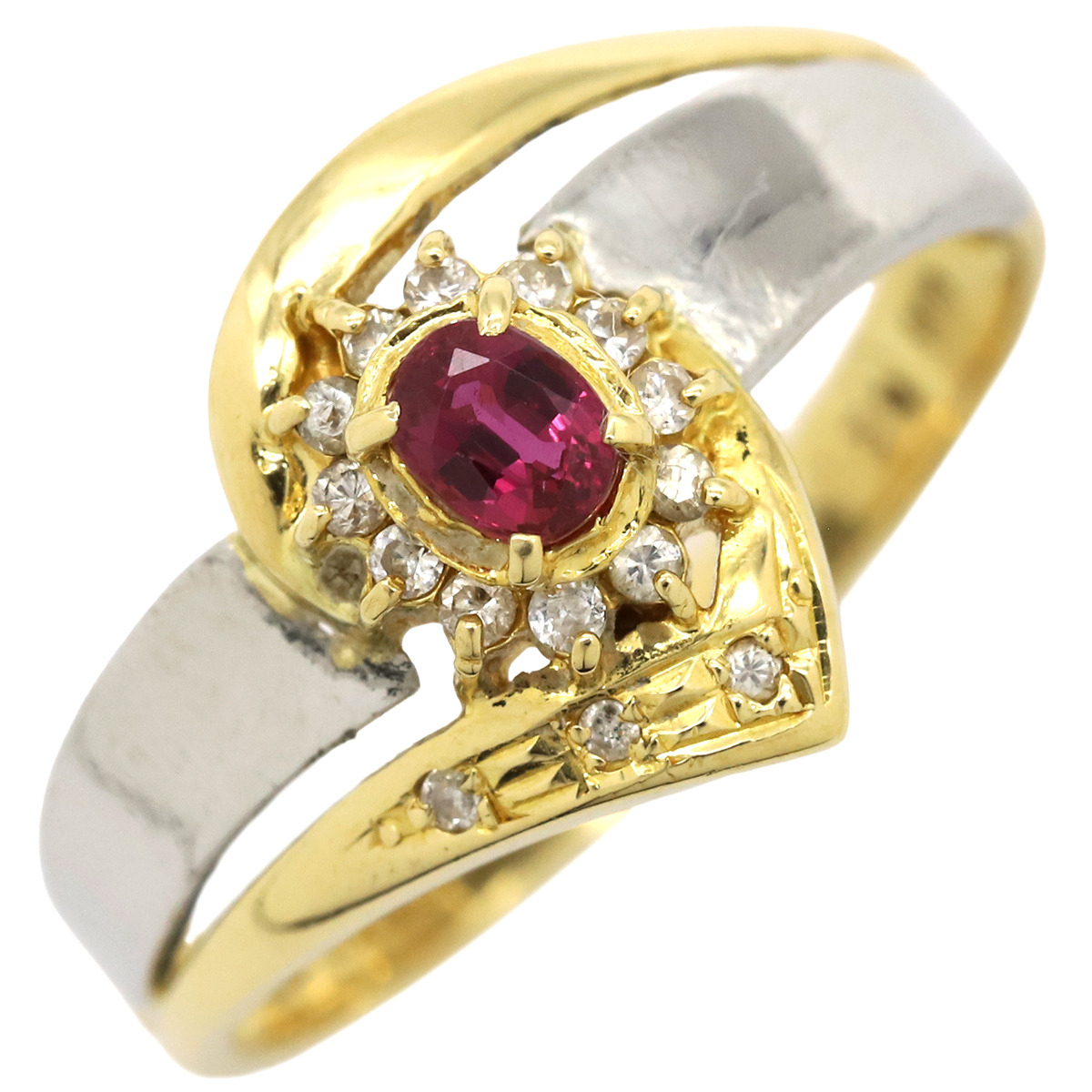 リング 指輪 ルビー ダイヤリング K18YG ゴールド コンビリング 中古