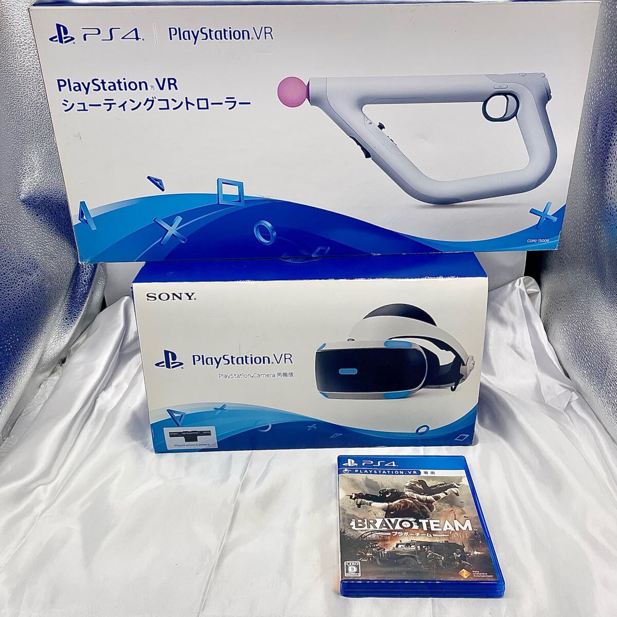 【現状品 通電未確認】SONY PlayStation VR CUH-ZVR2 シューティングコントローラー CUHJ-15006 BRAVO TEAM ソフト付 PSVR PS4 u9833