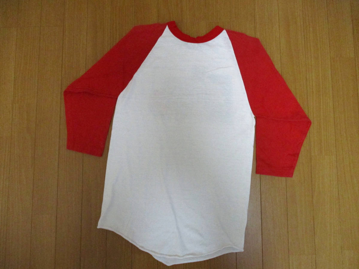 ビンテージ RUSSELL プリント ラグランTシャツ 七分袖 USA アメカジ 古着 古着屋さんで購入した70,80年代ぐらいのUSAのビンテージ物です。素材は綿70、ポリエステル30です。色は白×赤系です。