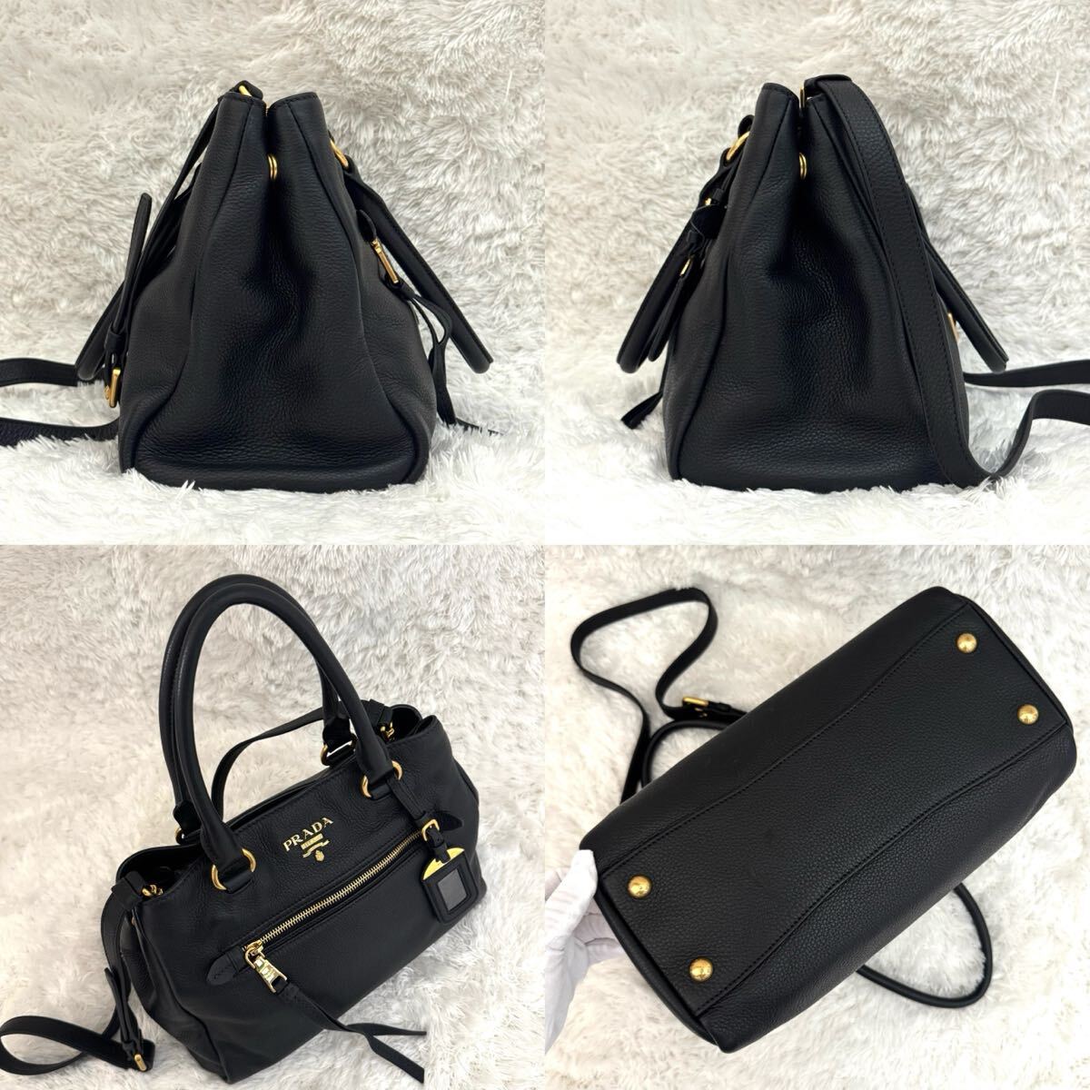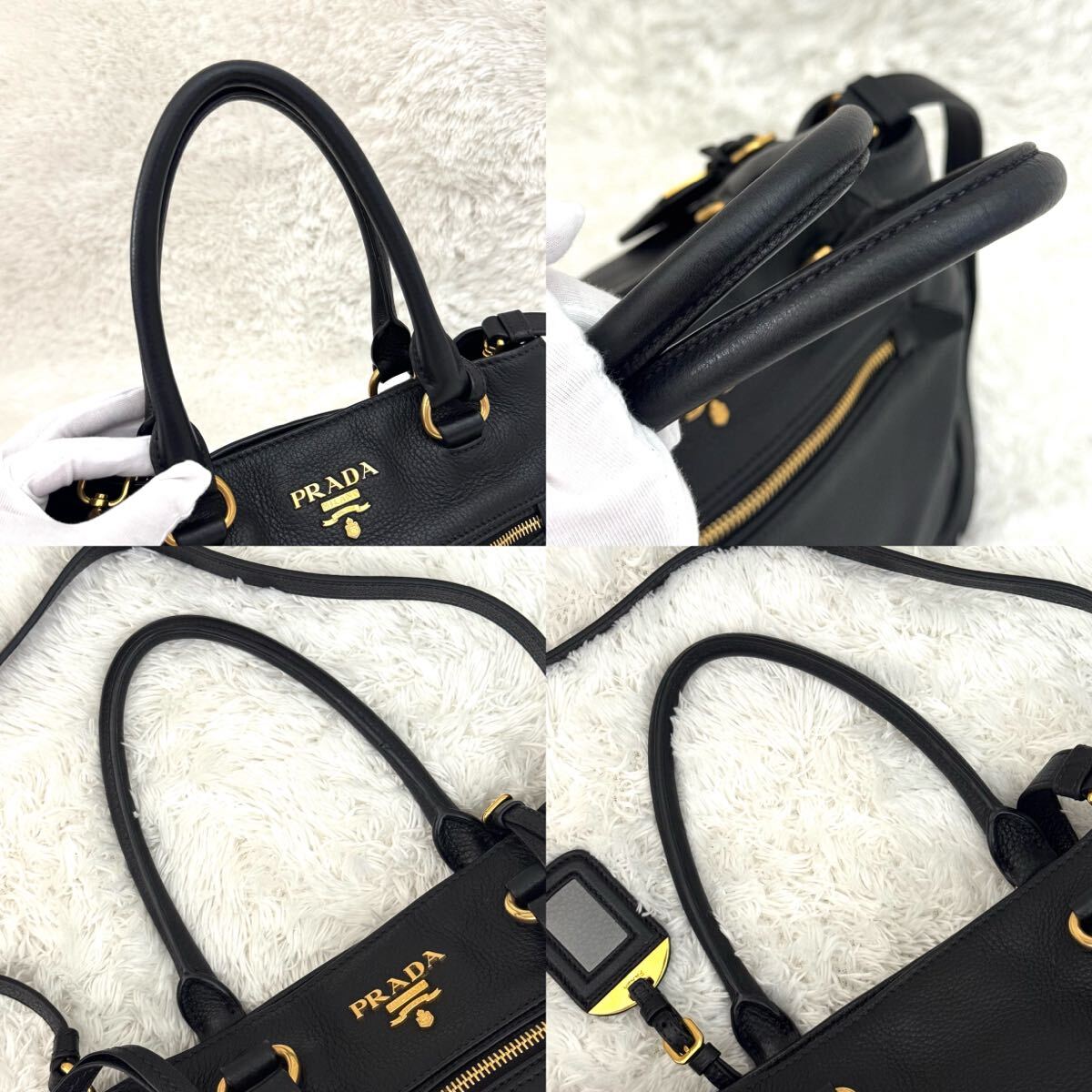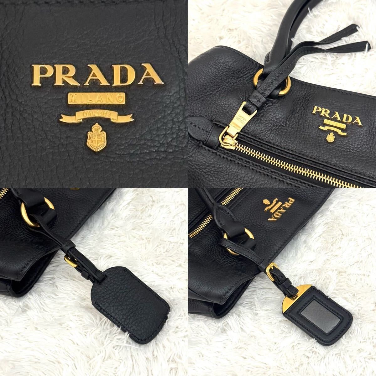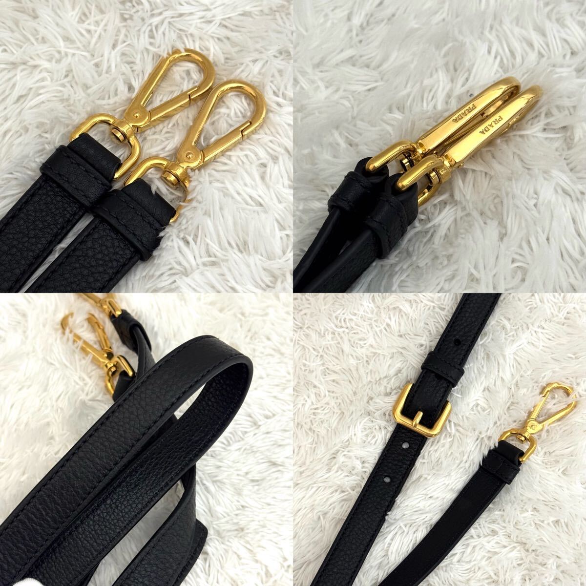 ゴールドのPRADAロゴが高級感を引き立てるショルダー紐付きハンドバッグ★