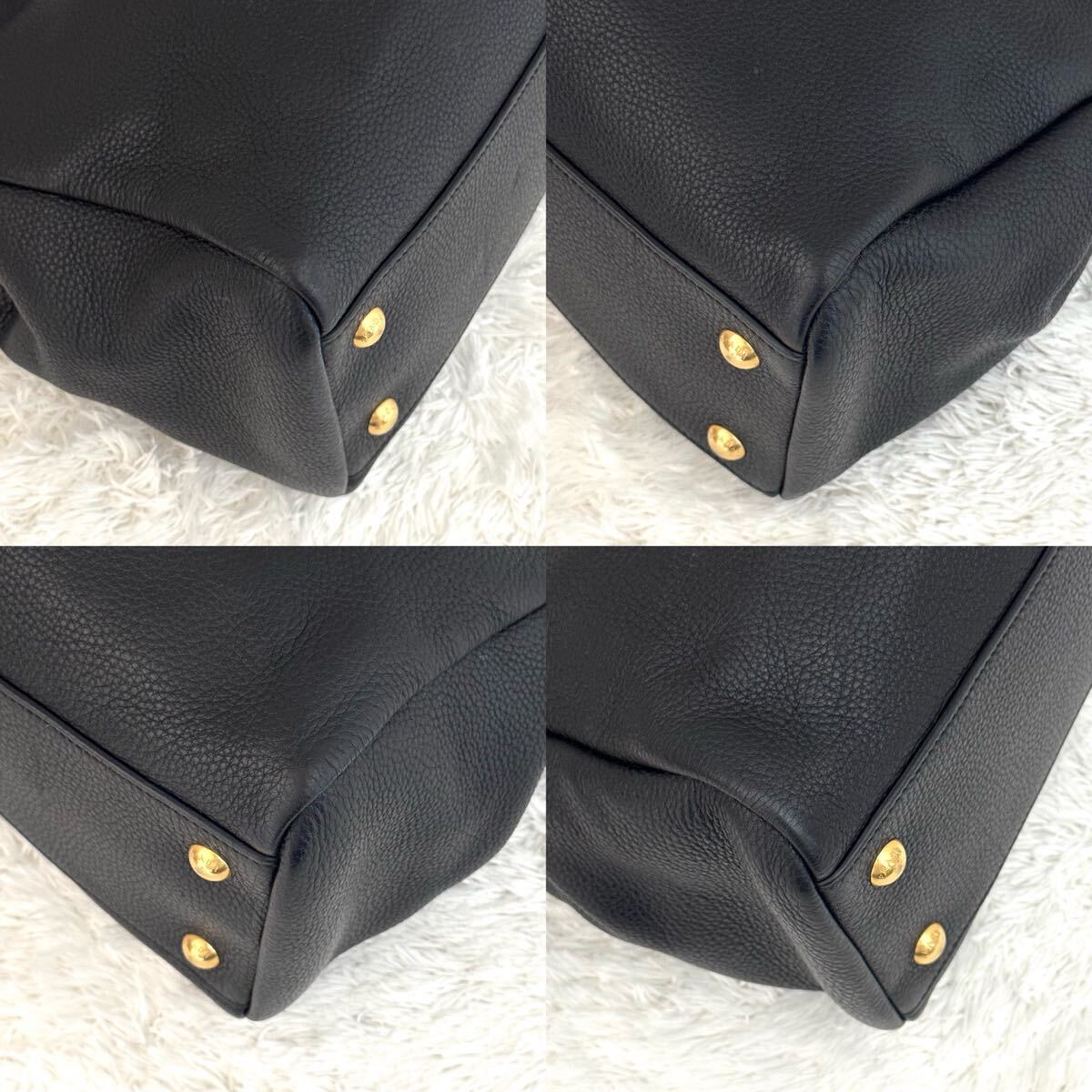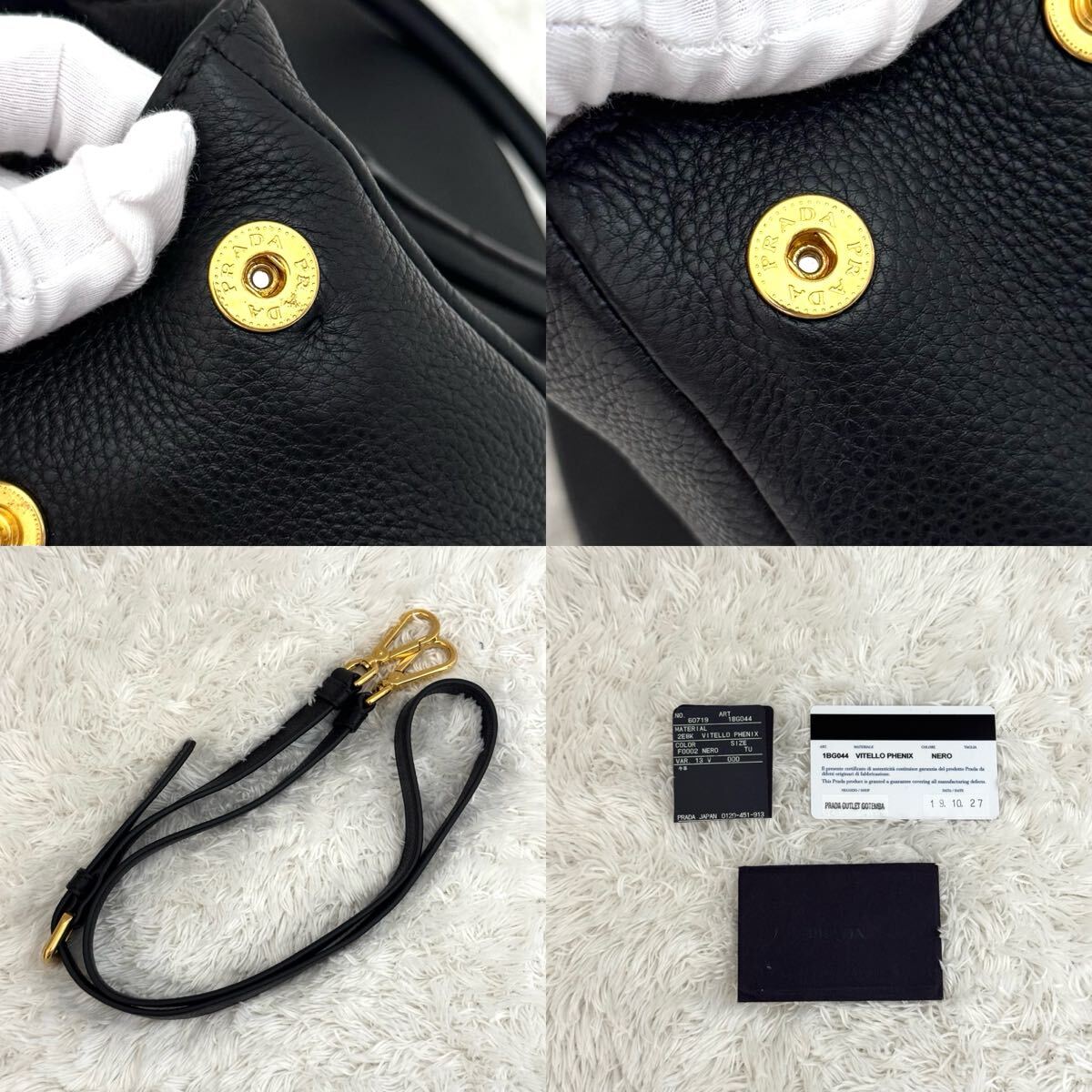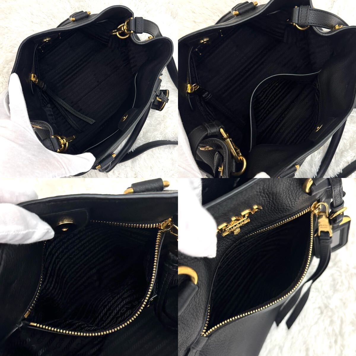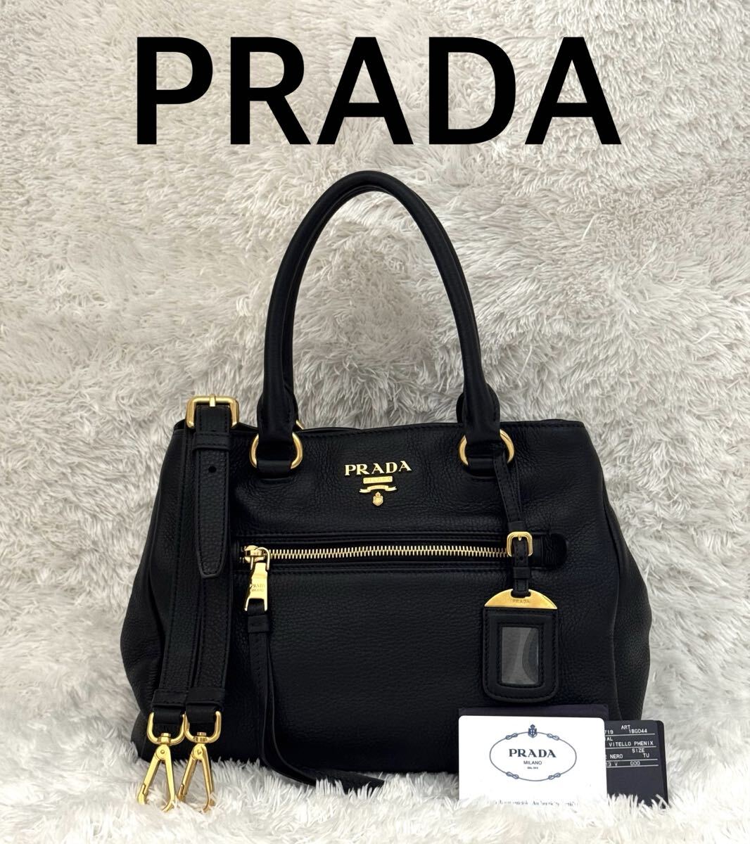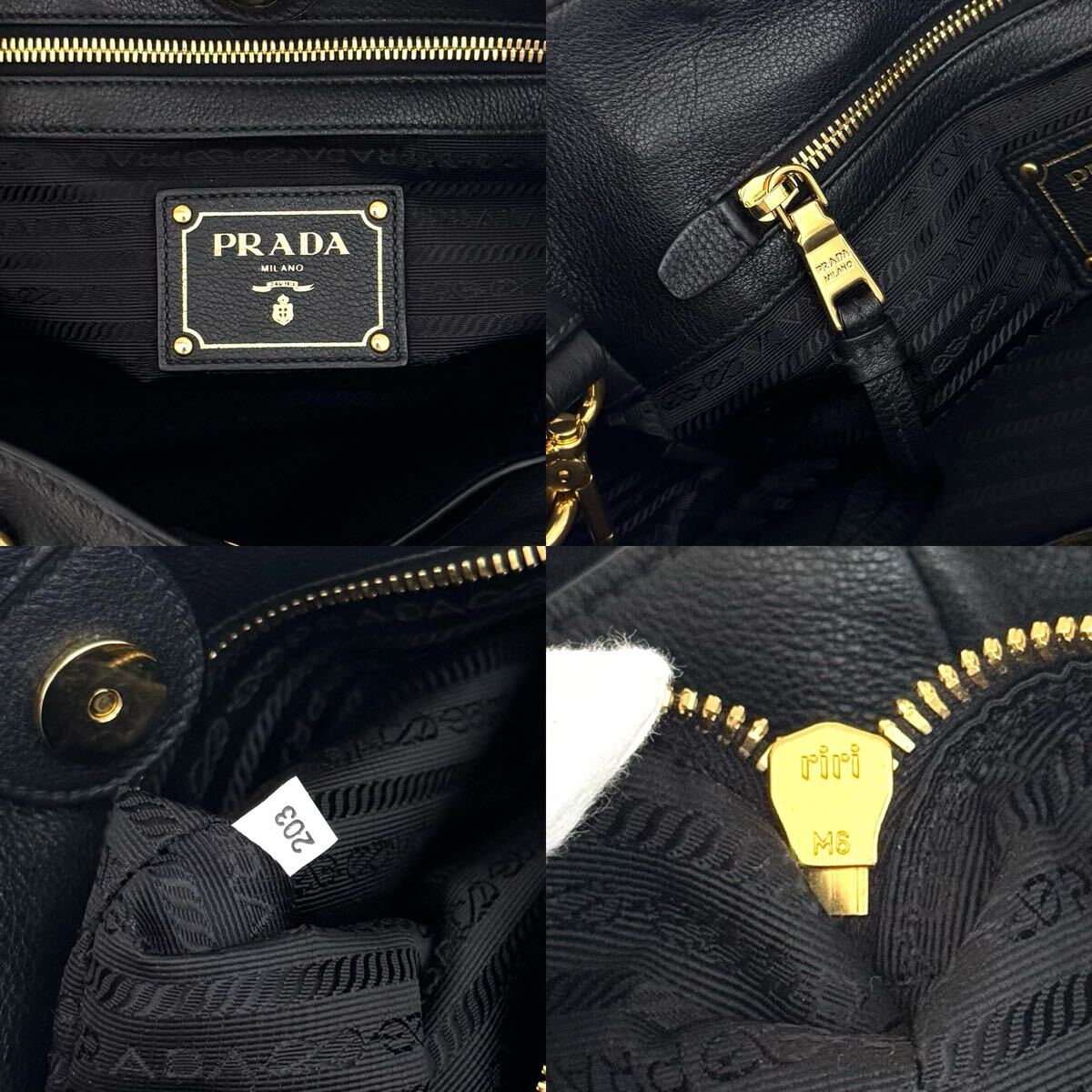 ゴールドのPRADAロゴが高級感を引き立てるショルダー紐付きハンドバッグ★