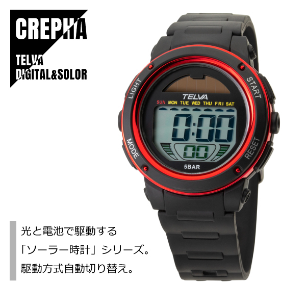 CREPHA クレファ TELVA テルバ デジタル&ソーラーウオッチ 多機能 TE-D192-RD ブラック×レッド 腕時計