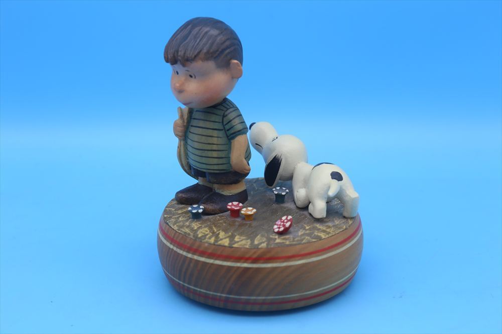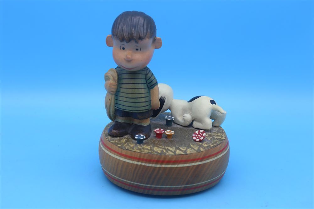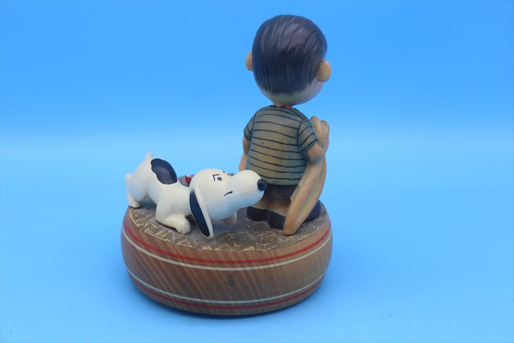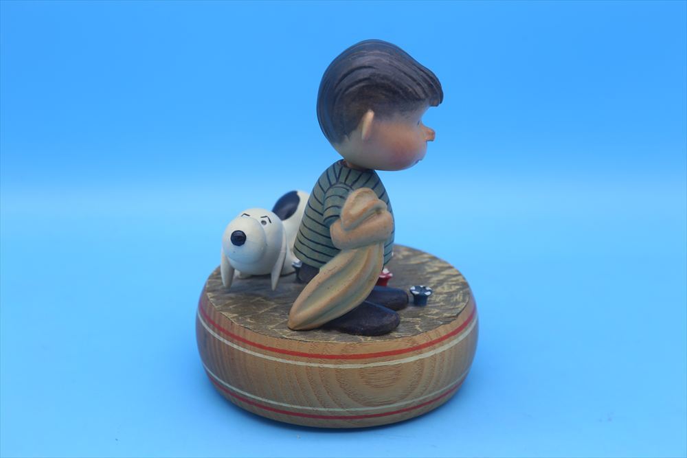 1960年代アンリ社製のライナス&スヌーピーの木製オルゴールです。陶器とはまた違った表情が特徴的なオルゴールになります。