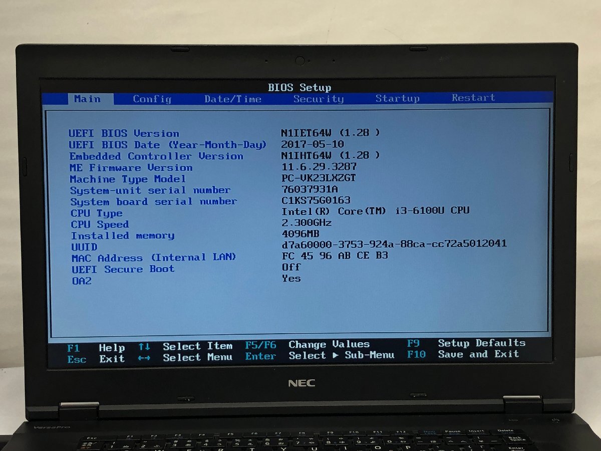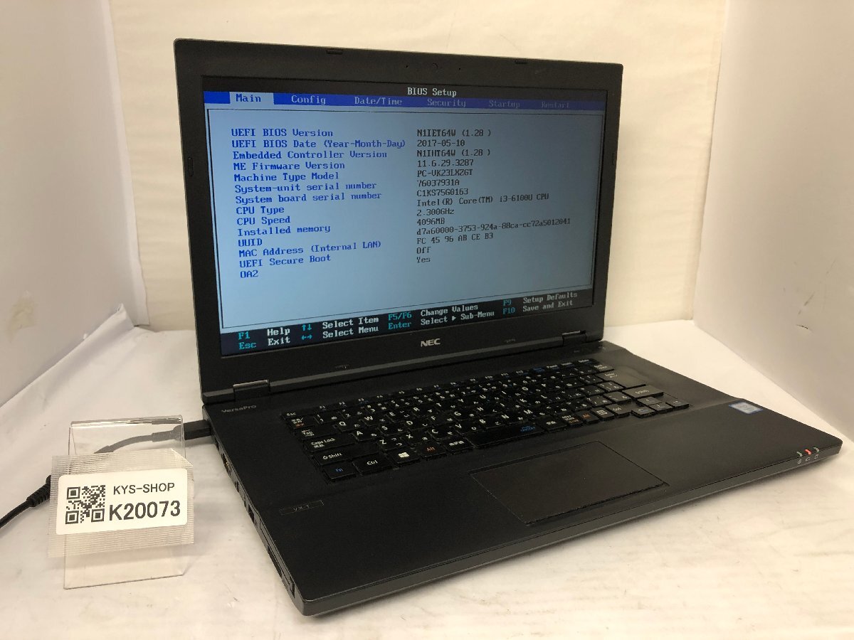 ジャンク/ NEC PC-VK23LXZGT Intel Core i3-6100U メモリ4.1GB ストレージ無し 【K20073】