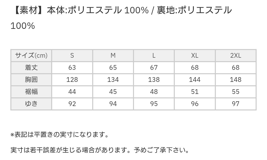 【素材】本体:ポリエステル 100% / 裏地:ポリエステル 100%
