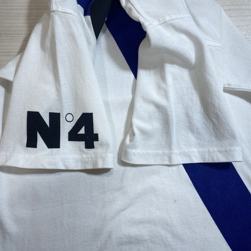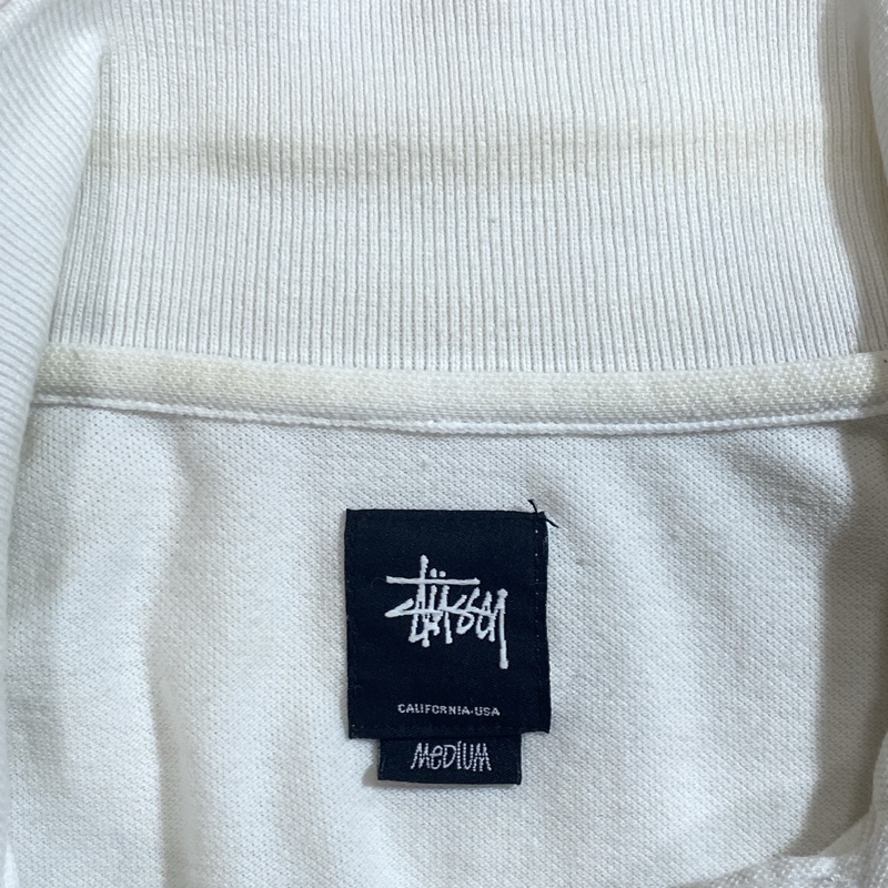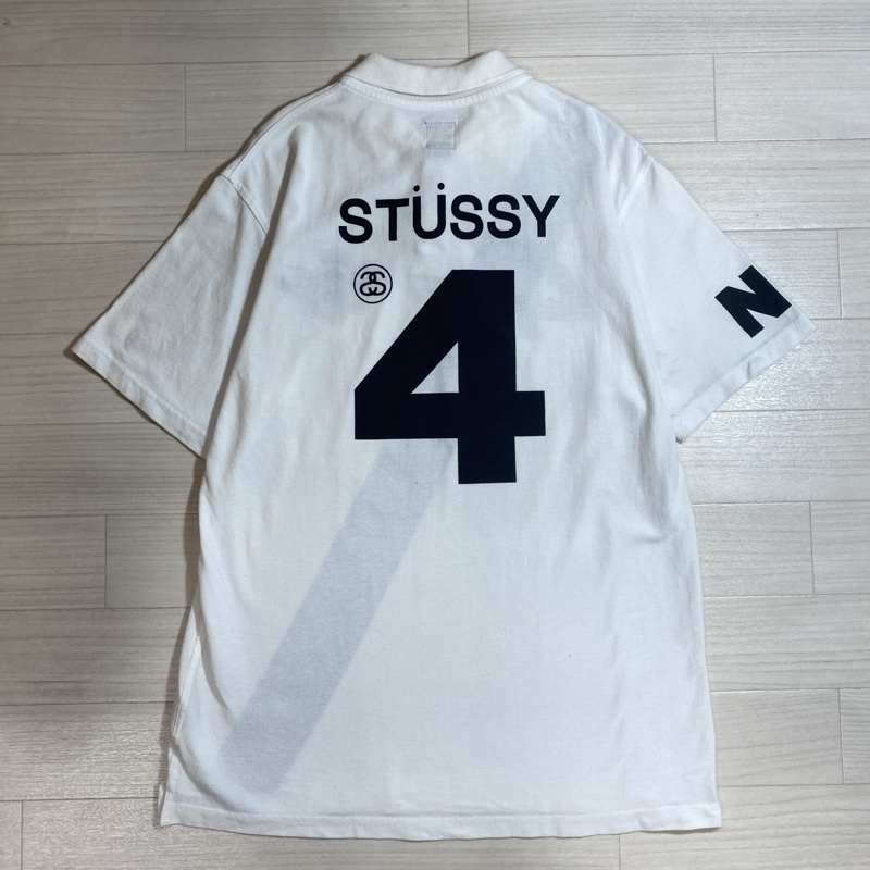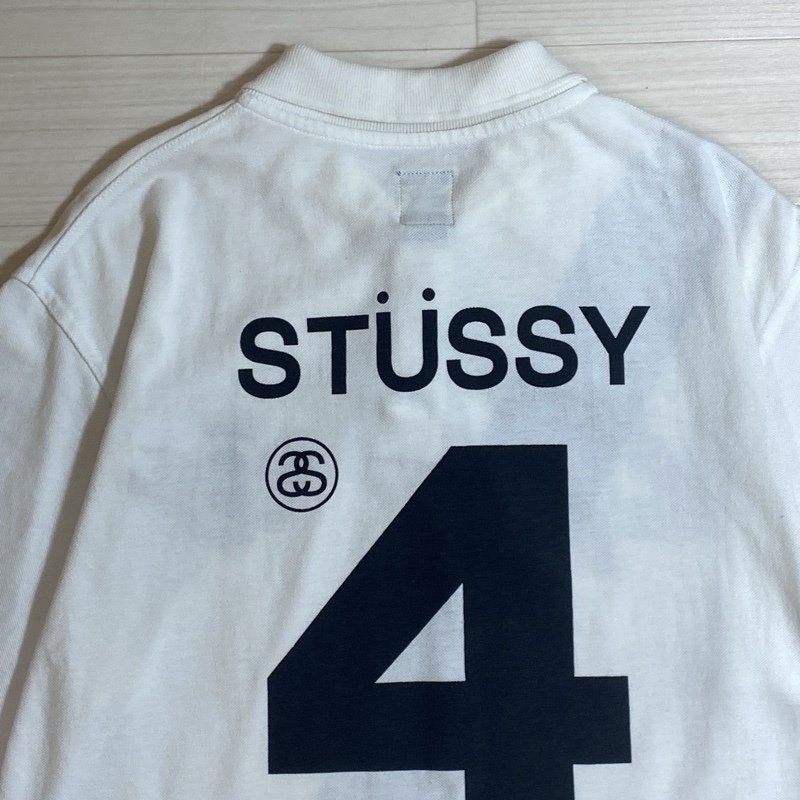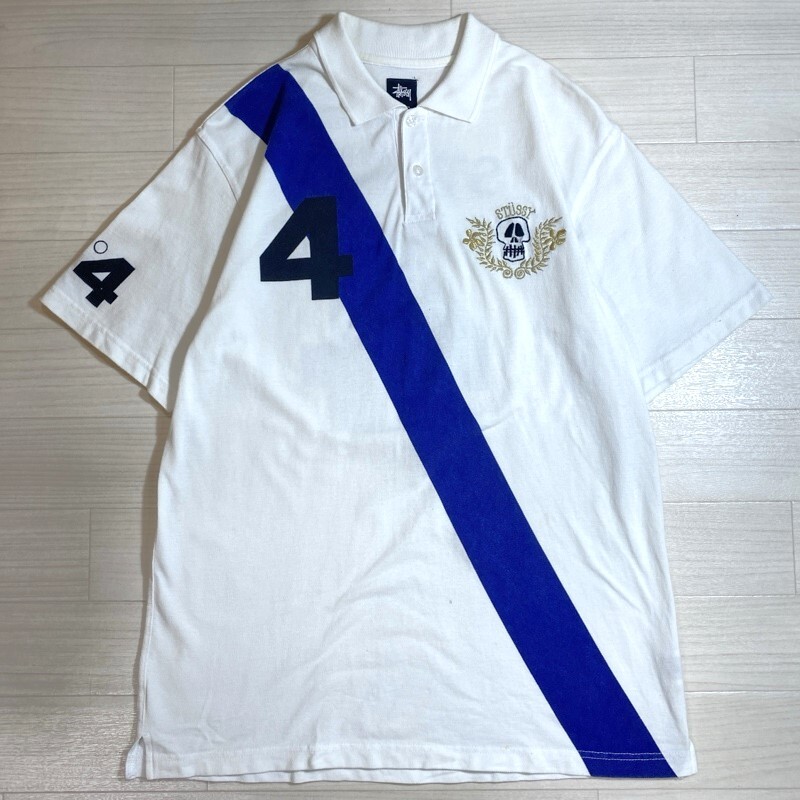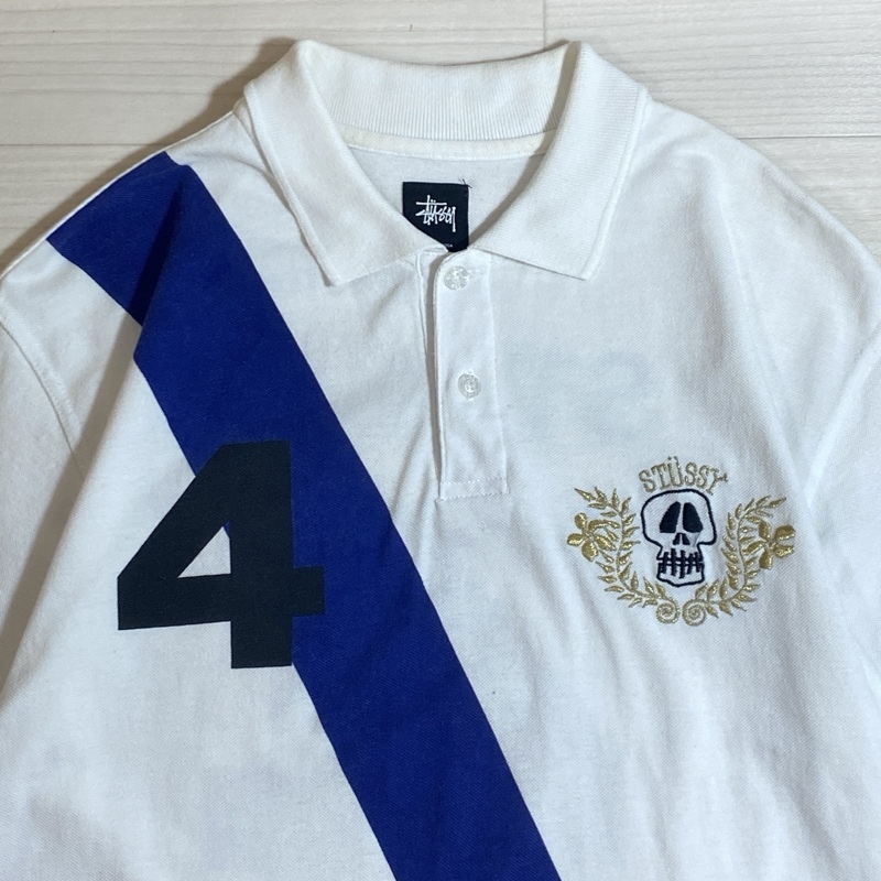 STUSSY/ステューシー/スカル×SSリンク/ナンバリング/半袖 鹿の子ポロシャツ/No4/斜めライン/ホワイト/BIG 4/両面プリント