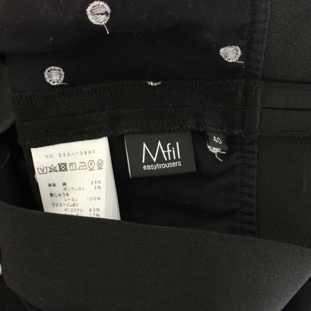 エムフィル M fil ドット刺繍テーパードパンツ クロップドパンツ イージー 水玉 40 黒 ブラック 白 ホワイト 222-13880 /HN
