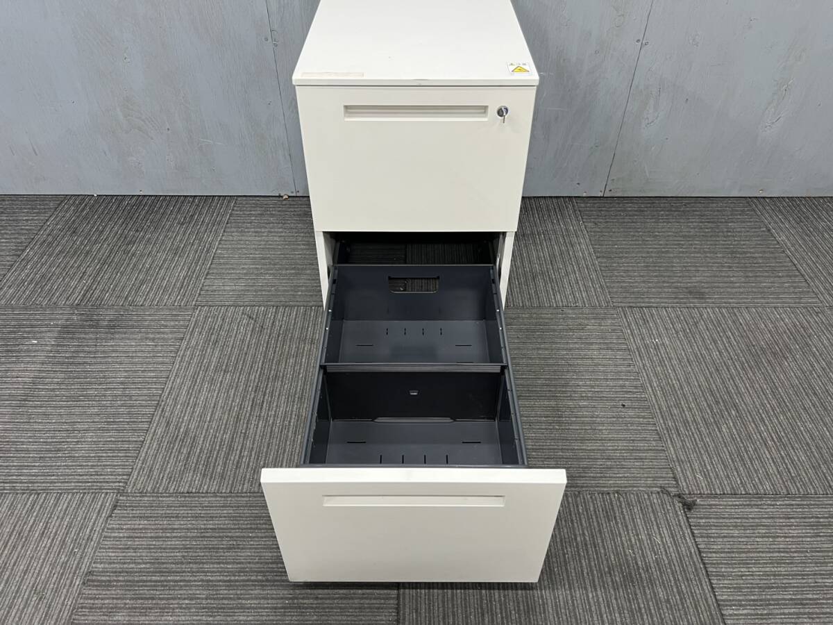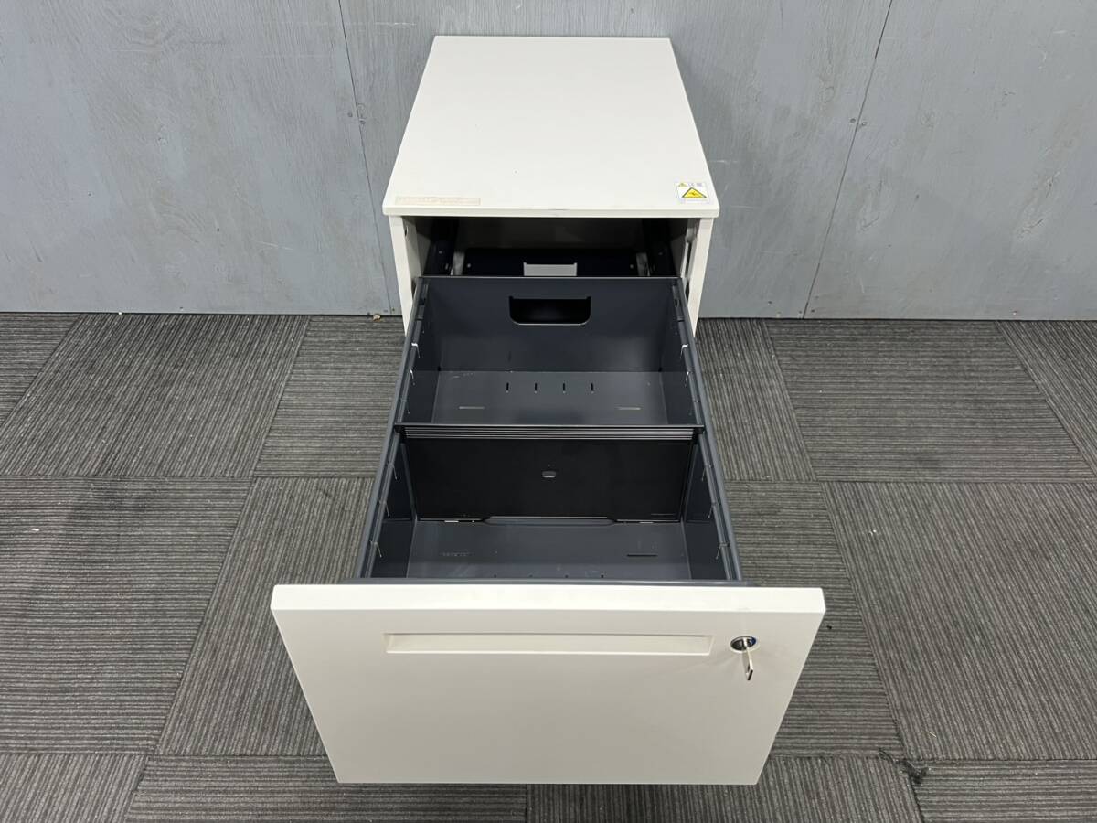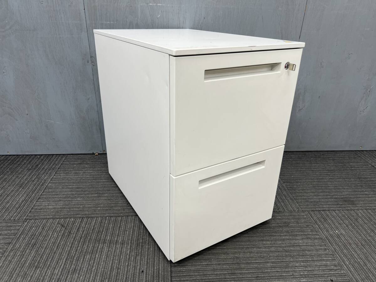 ◆管218◆自社便対応地域あり◆イトーキ製◆2段デスクワゴン 鍵付き◆幅395mm 高605mm◆白 ホワイト