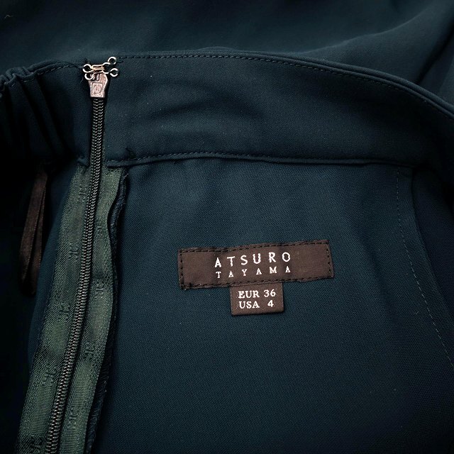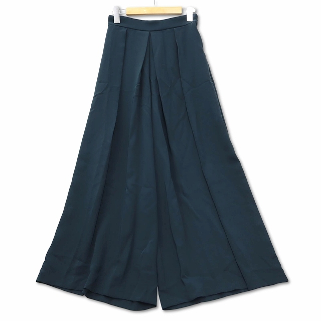 アツロウタヤマ ATSURO TAYAMA ゴムウエスト タック入り ワイドパンツ スカンツ 36 グリーン レディース