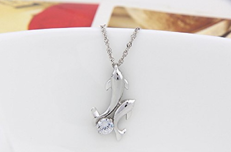 ◆ペンダントサイズ:イルカ1.5㎝×2.0㎝ ステンレスチェーン全長:約50.0㎝  素材:合金、キュービックジルコニア
