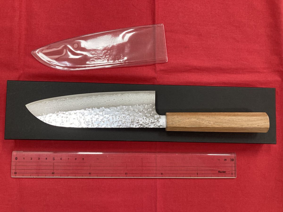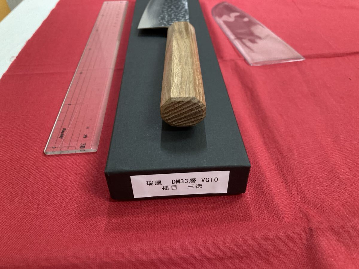 越前打刃物 黒崎真作 三徳 瑞風 ダマスカス33層仕上げ 165mm