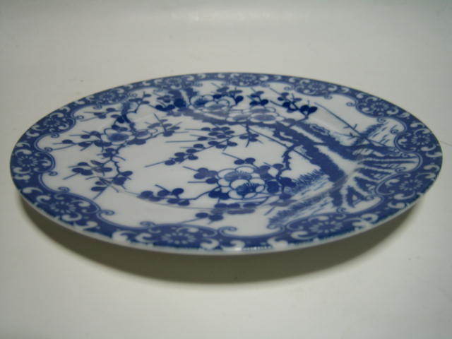 レア アンティーク★日本特製 古梅木図 印判手 中皿 ケ ーキ皿 パン皿 プレート 菓子皿 大正~昭和初期 輸出用 里帰り 1枚★