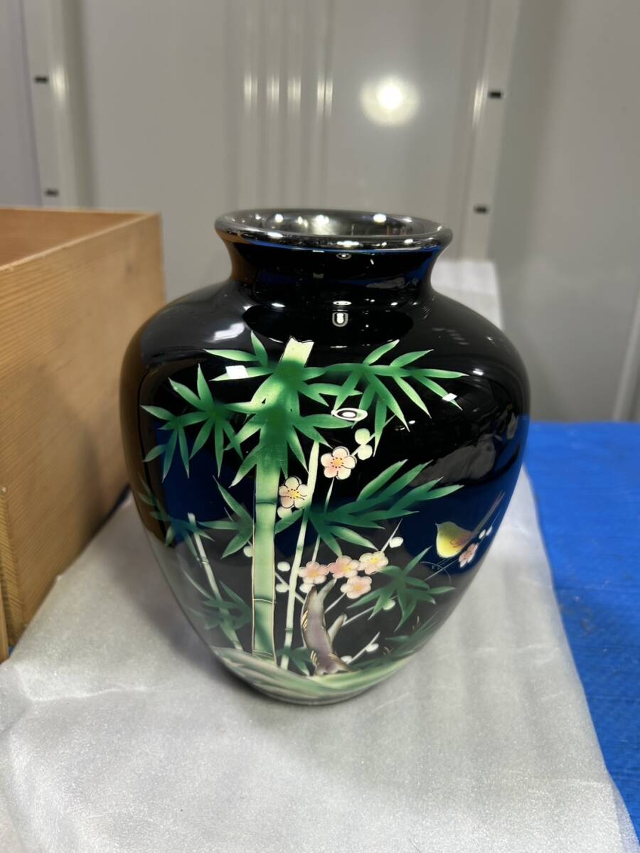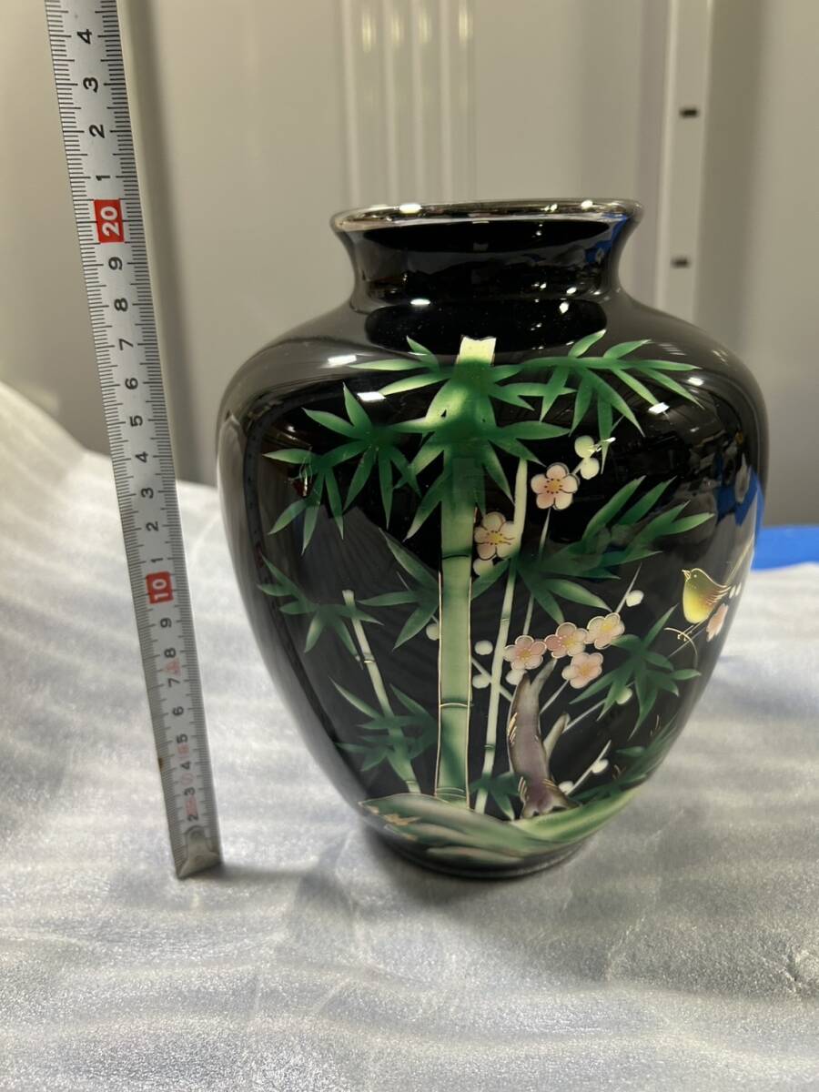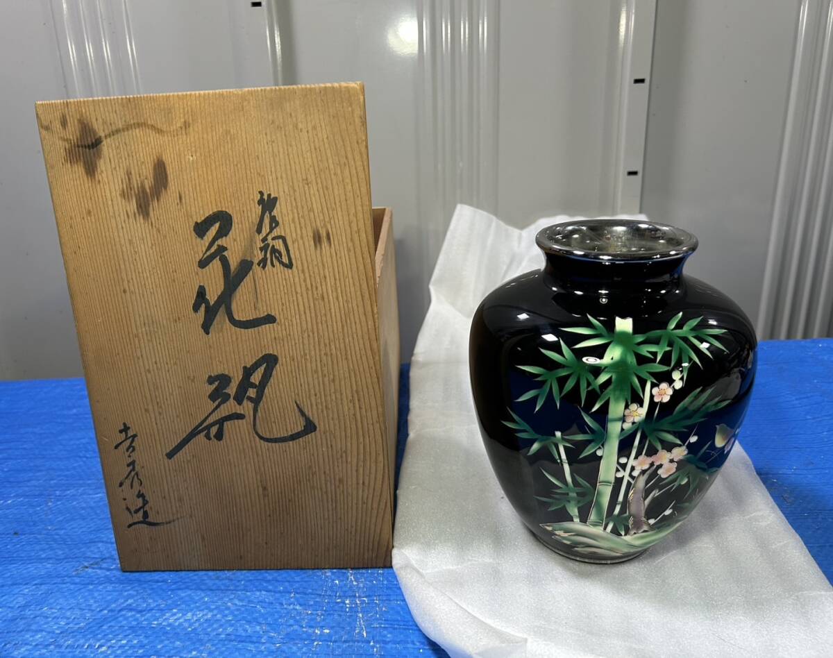 【希少価値品 書道先生放出品】七宝焼 黒翠 陶七宝 花瓶 昭和レトロ 壺 花入 生け花