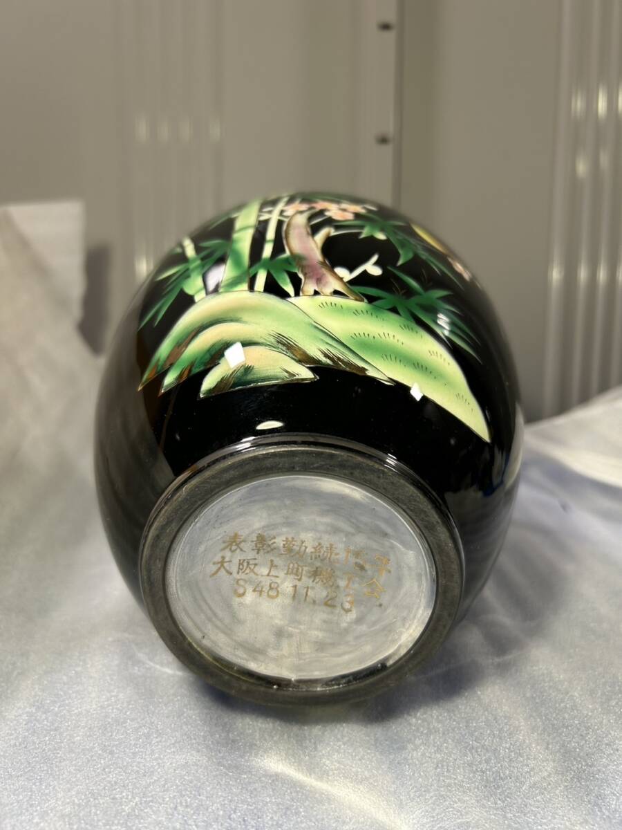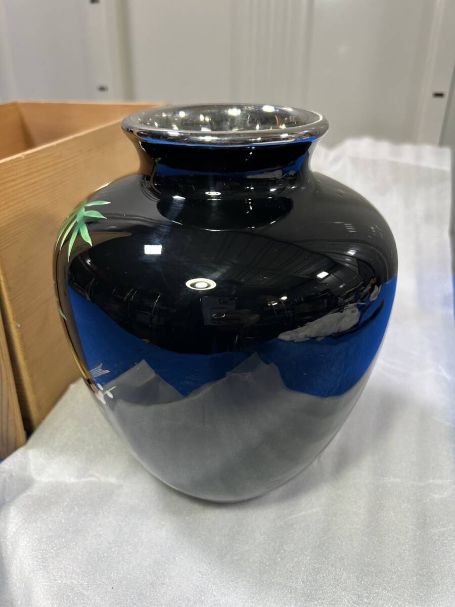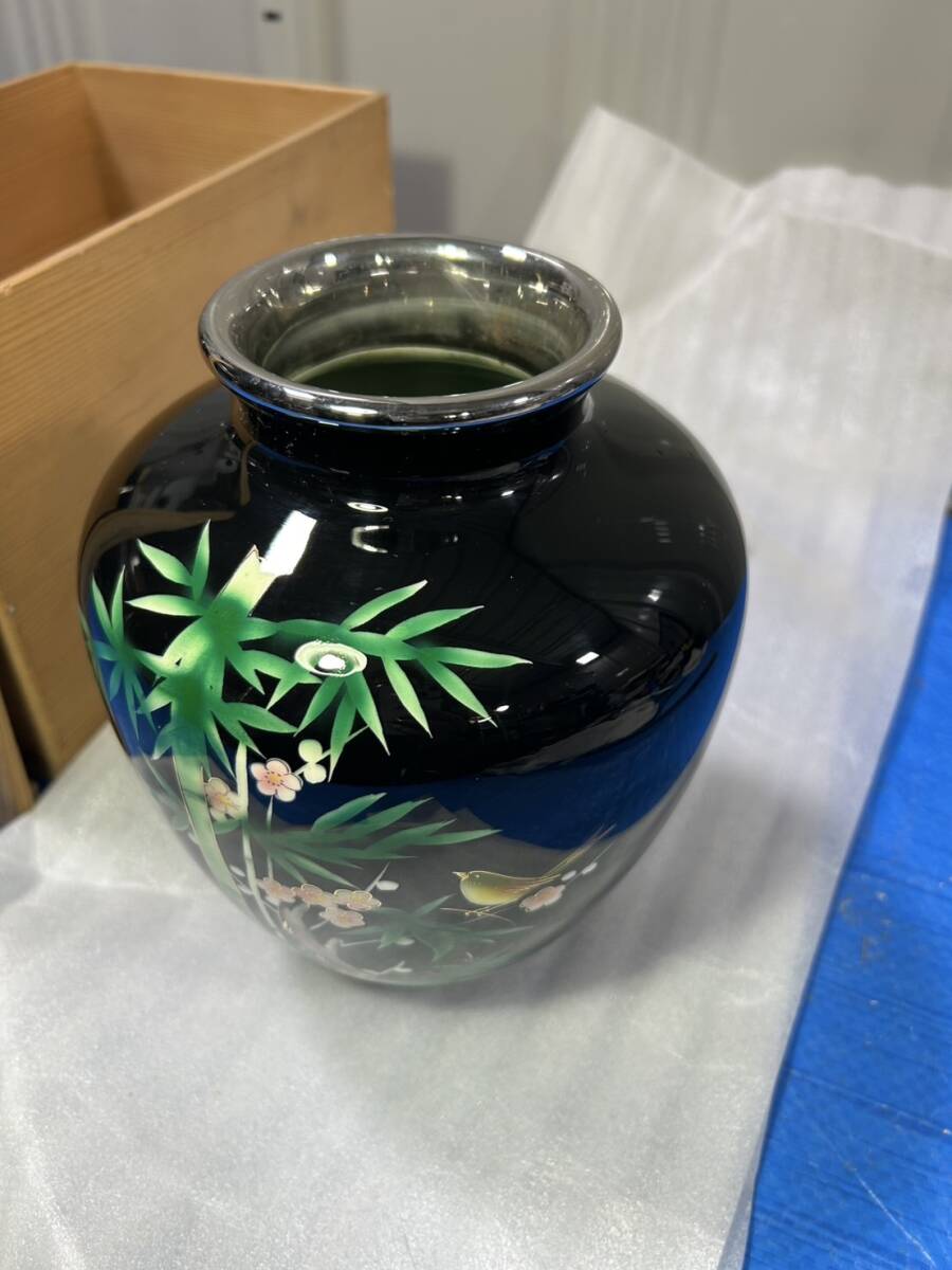 【希少価値品 書道先生放出品】七宝焼 黒翠 陶七宝 花瓶 昭和レトロ 壺 花入 生け花