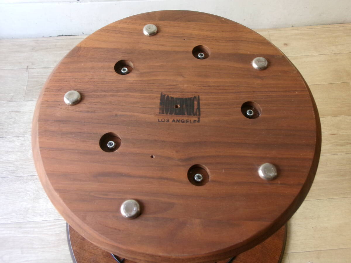 ♪♪♪24時間以内の連絡と2日以内の入金手続が可能な方、商品到着後 迅速に受取完了連絡が出来る方、のみご参加下さい。新規の方、悪い評価の目立つ方の入札落札は削除する場合がありますので、予めご了承下さい。必ず気になる点は入札落札前にご質問下さい。落札後の質問や長期保管願いなどは御遠慮下さい。落札後1週間以上の保管は出来ません。入札落札後のキャンセルは出来ません。落札後に取引ナビより、お電話番号の御連絡をお願い致します  ♪♪ MODERNICA LA モダニカ 正規品 イサムノグチ サイクロン エンドテーブル サイドテーブルです。希少なウォールナットモデル。サイズ 約 Φ600×H505mm。モダニカ初期のヴィンテージ品ユーズド品になります。ユーズド感あります。画像のようにエッジにキズ(画像以外にも有)、天板スレや線キズ跡等あります。天板の支柱取付が多少ズレていて、ロゴ回りにネジ穴を埋めた様な跡が4つあります。この辺も昔のアメリカっぽいです。ベースエッジ下にキズあります底部の金属グライズに多少サビあります。ヴィンテージ感あって雰囲気良いです。特に使用上の問題はありません。使用感につきましては、目立つ使用感中心に掲載しておりますので追加画像御確認下さい。画像の枚数が限られておりますので画像に写り切らないスレ、キズ、等あるものとしてお考え下さい。ヴィンテージ品、使用中古品になりますので、御理解ご了承の上、入札下さい。ノークレームでお願い致します。不明点は問合せ下さい。ヴィンテージ品ユーズド品になりますので、少しでも気にされる方、神経質な方、細かい事を気にする方、製品の特性にご理解の無い方、ヴィンテージ品にご理解の無い方はお控下さい。☆☆☆配送料 アート家財おまかせ便 配送料 東京都¥4510  大阪府¥5690  福岡県¥6870 その他の地域はお問合せ下さい。  ※※重要:ガイドライン変更により電話番号は出品者には非表示です。家財便は電話番号必須になりますので、落札後に取引ナビメッセージ欄より必ずお電話番号の連絡をお願い致します。 1101