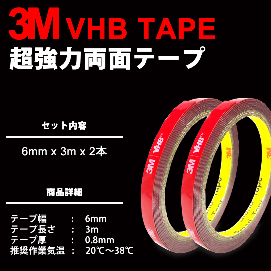 超強力両面テープ 6mm x 3m 2本セット 3Mテープ スリーエム VHBテープ 補修 工具 パーツ交換 ネコポス 送料無料