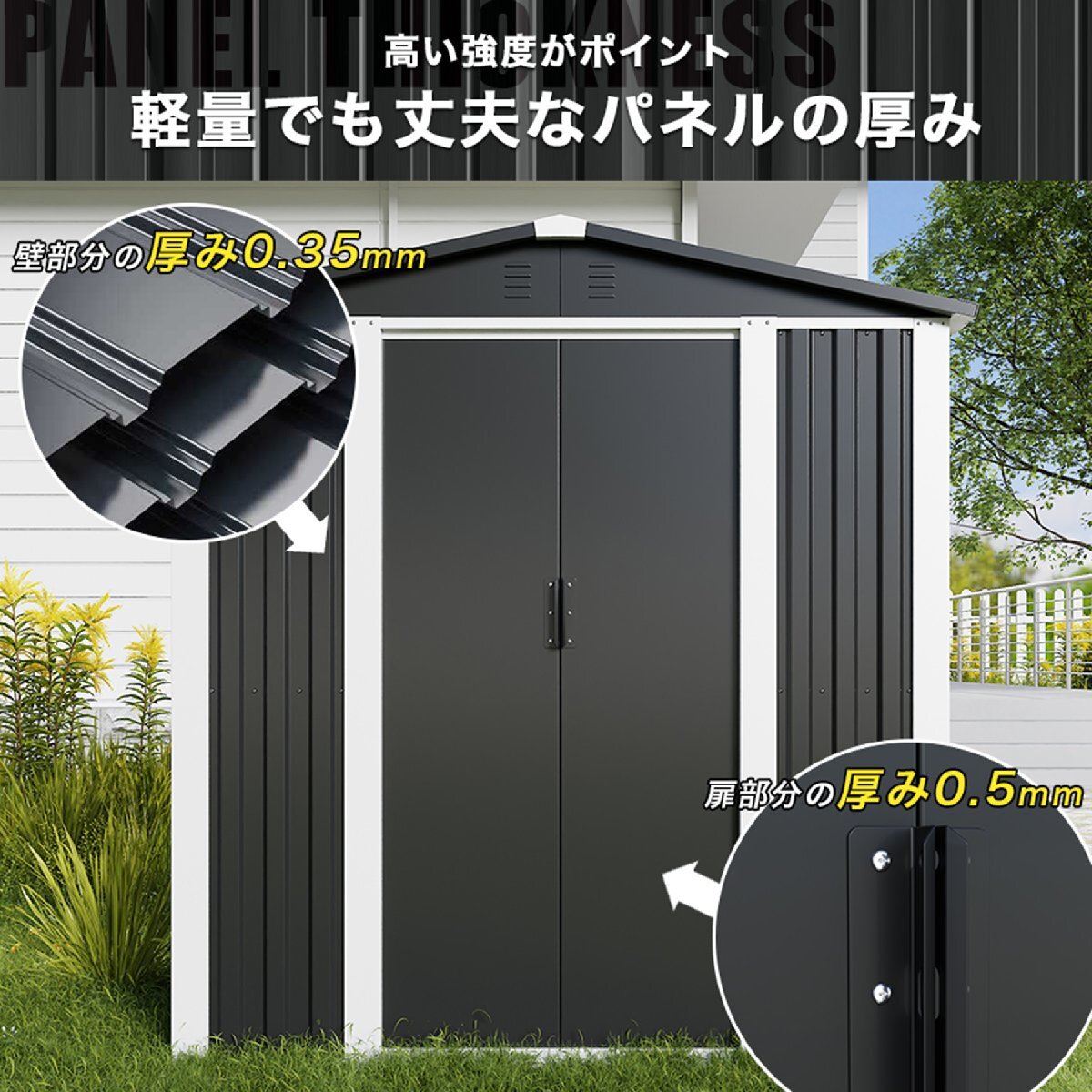 6.家の屋根などから大量の雨水が、直接物置の屋根や壁に当たらないよう配慮してください。雨漏りの原因になります。