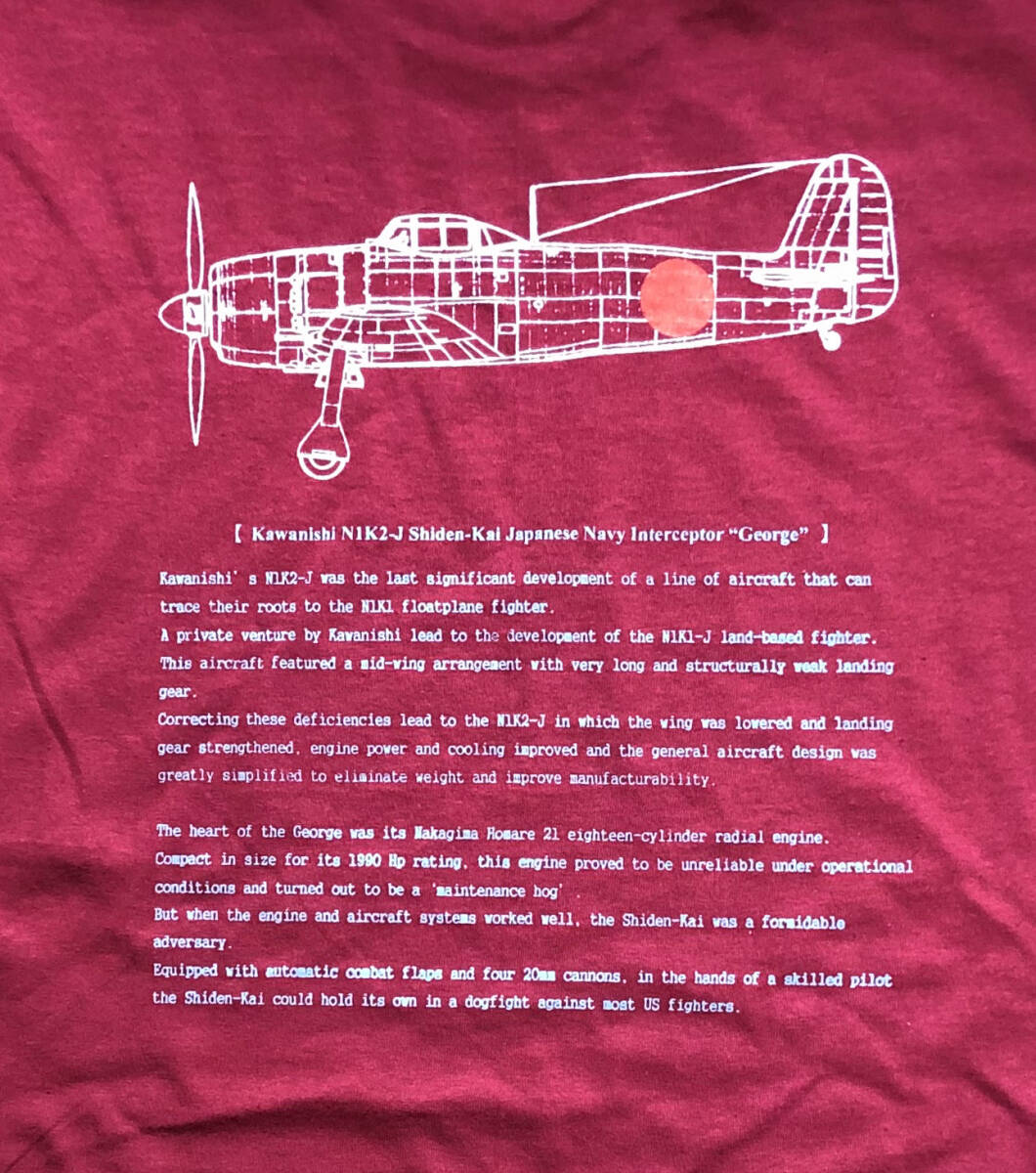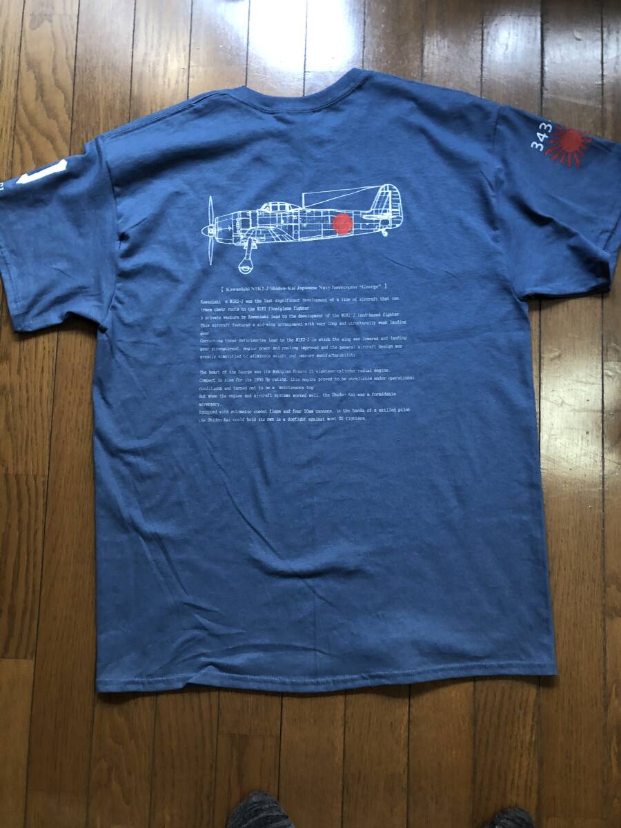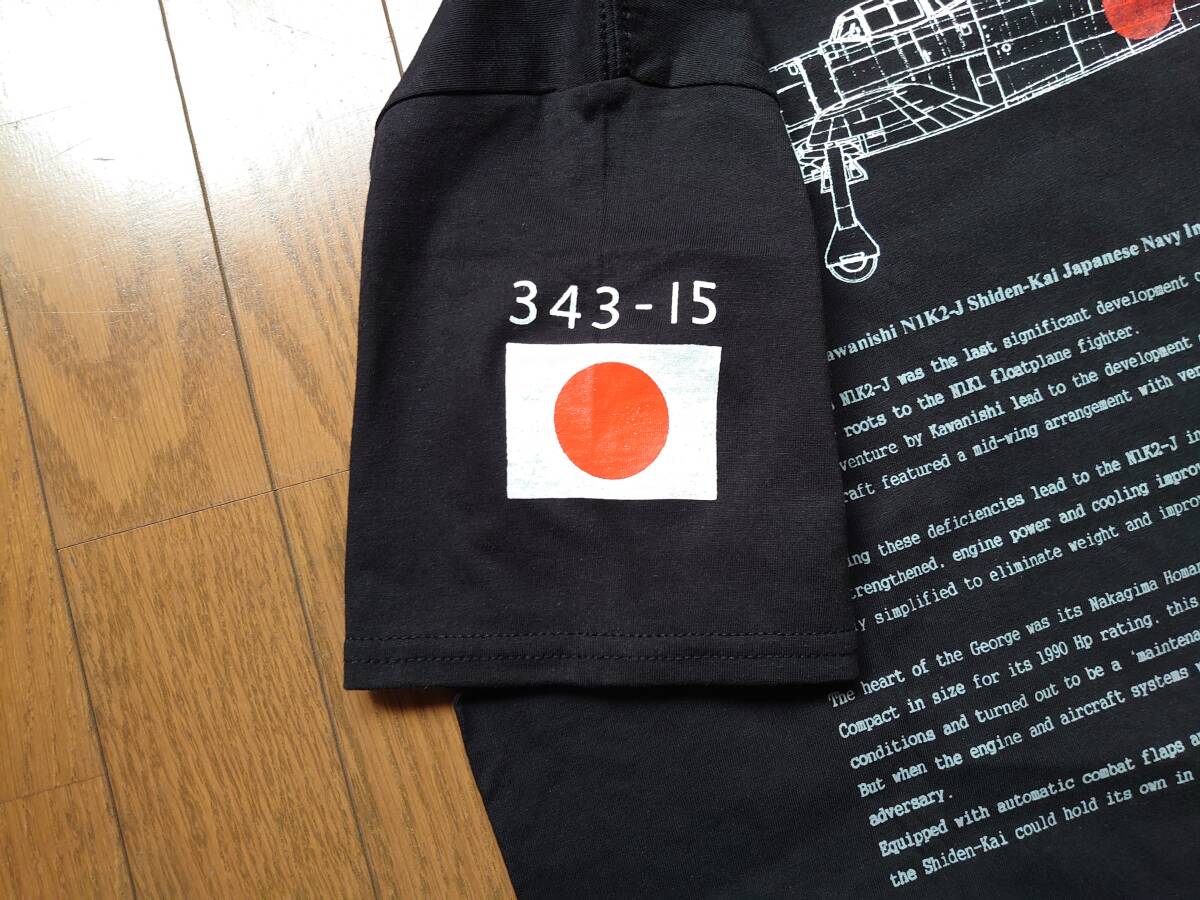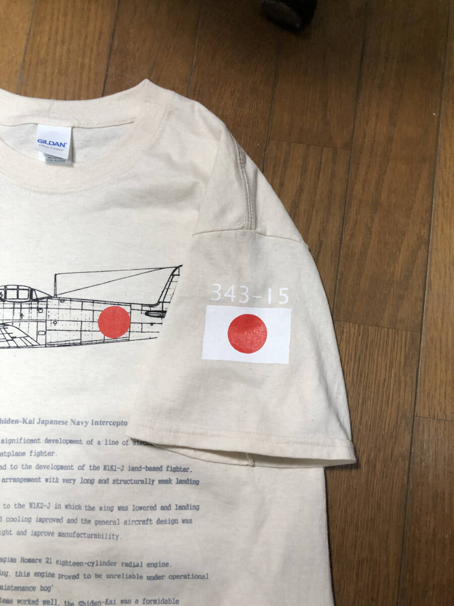 フロント面もしくはバックに紫電改をプリントし、片袖には海軍機とその上に343空の部隊マーク(尾翼のマーク)をプリントします。