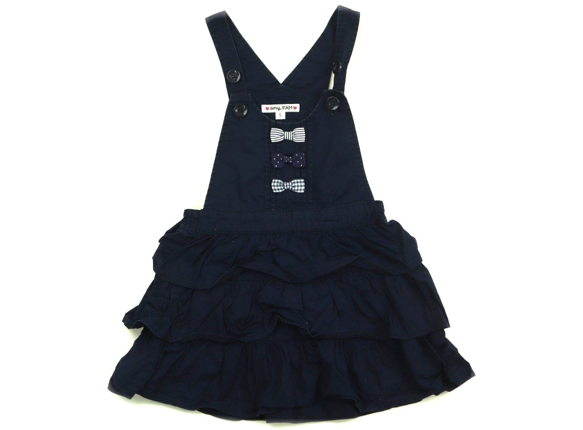 実際のサイズ表記はS90-100cm。コットン製、裏地はありません。二段階で肩紐の調節が可能です。全体にシワ、細かい白の毛羽付着が見受けられます。所々に白っぽい擦れがあります。普段使いにいかがでしょうか。