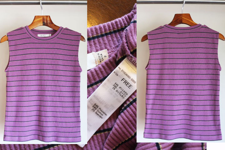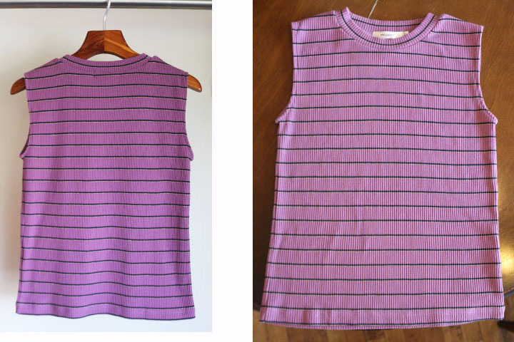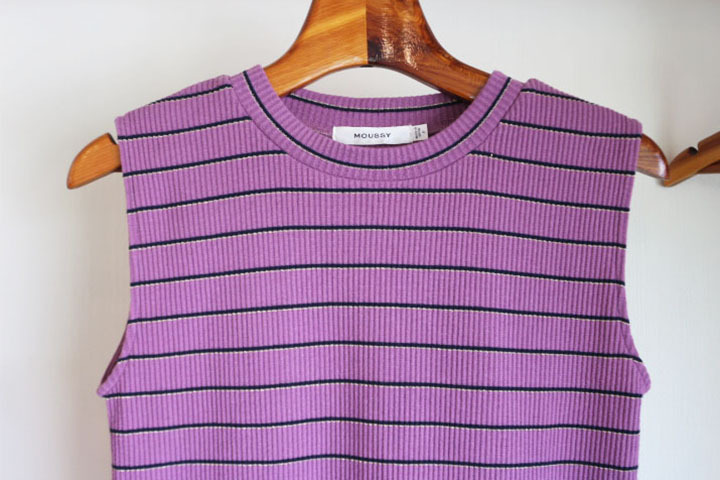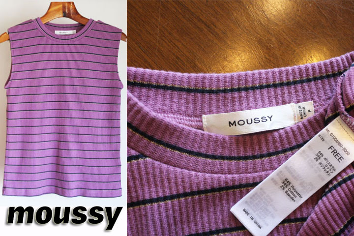 マウジー ストレッチ抜群 ボーダー ノースリーブ カットソー moussy ラベンダー ピンク 撫子色 春夏 美ライン 黒 ブラック ゴールド 金色