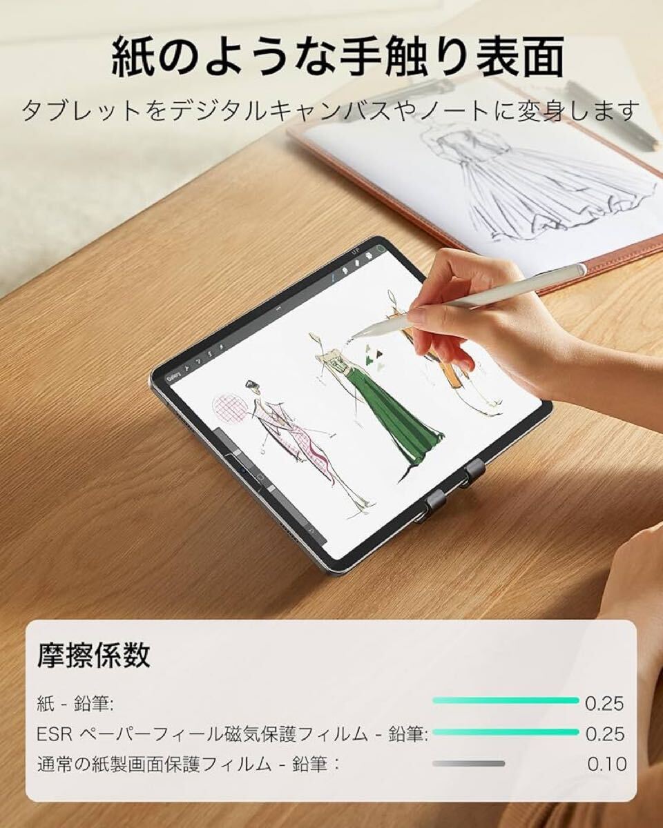 紙のような書き心地: 特別に処理された表面はプロ仕様の描画領域を提供し、タブレットをデジタル キャンバスやノートブックに変えます。