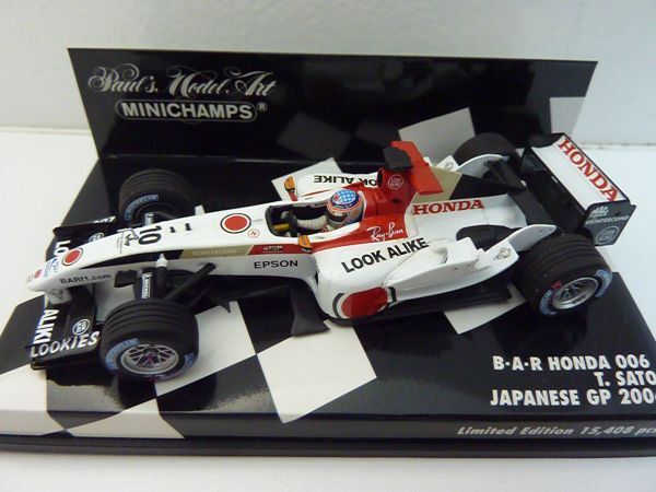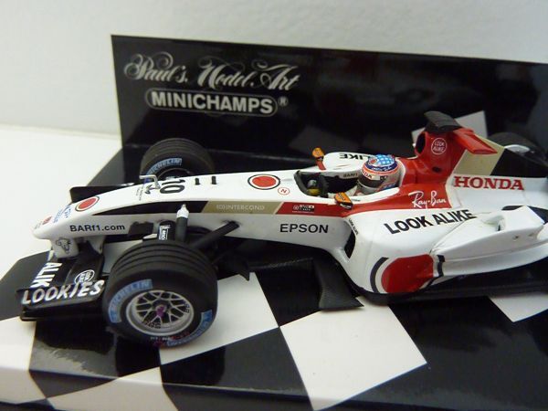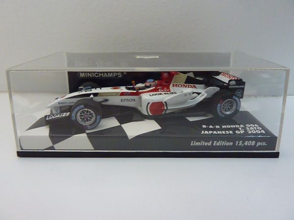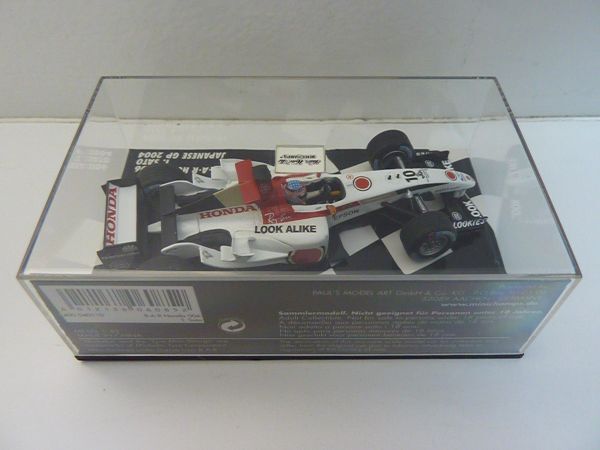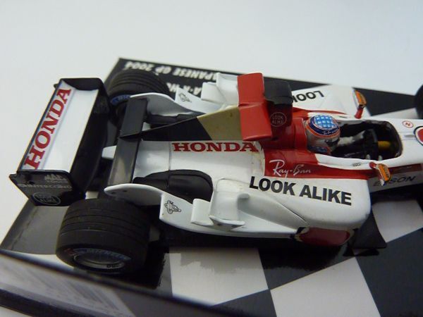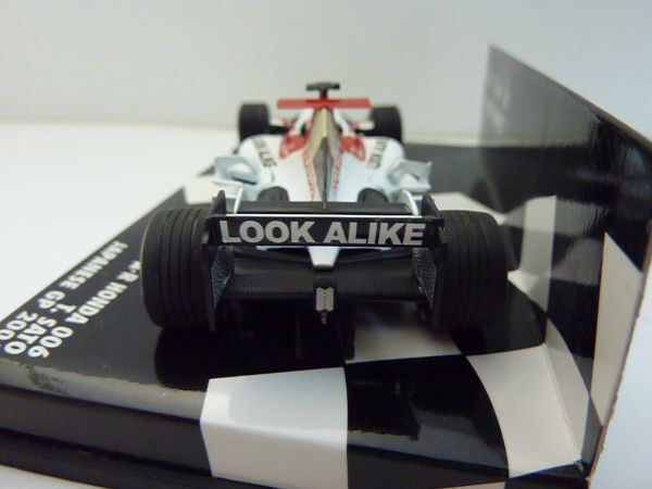 1/43スケールのミニチャンプス(PMA)製ダイキャストモデル。製品番号400 040110。限定15,408個。製造上の多少のデカールの曲がり・シワ・浮き・傷・カケ、塗装の汚れ・傷、パーツの取り付けの曲がりなどはご理解ください。コクピット左前のグレーのラインのデカール付近、インダクションポッド両側のグレーのデカール付近などにカビのような汚れが見られます。左サイドポンツーン上面に塗装汚れが見られます。他の個体でもありますが、左右のミラーの付け根付近のデカールに赤い塗料による修正痕があります。一部デカールの透明部分に若干変色が見られます。リアウイング、ミラー、カメラ、アンテナ類、補助翼などの取り付けに若干曲がりがあります。ボディやウイングの塗装に一部、細かい粉、汚れ、ダマ、荒れ、傷、ゴミの混入などあります。全体に細かい粉状のゴミまたは汚れの付着が多く見られます。タイヤにカビ汚れがあります。タイヤの周りの台紙にタイヤの揮発成分から生じたような白い汚れが若干見られます。ケースに多少擦り傷・カビ汚れがあります。ご了承ください。
