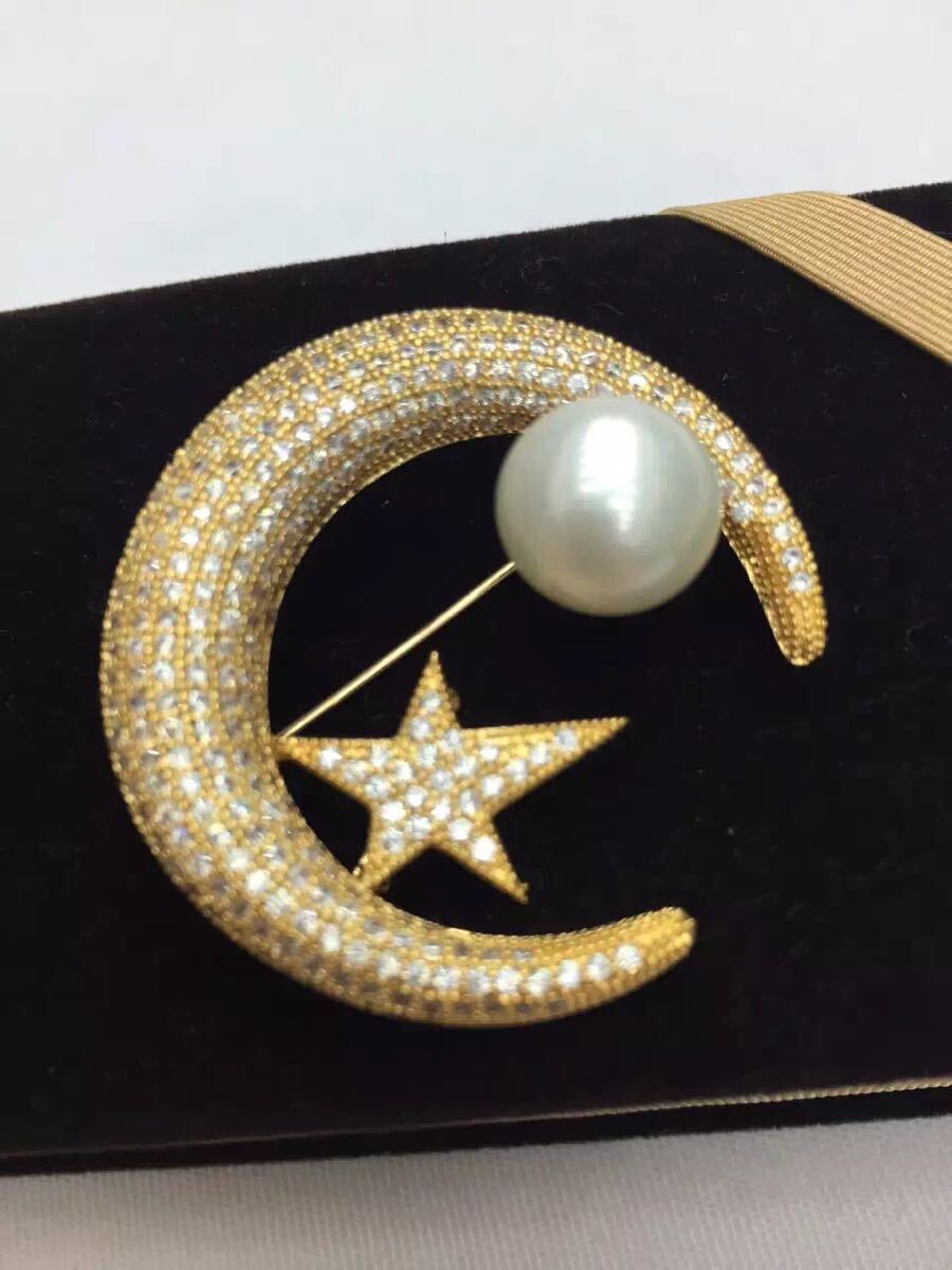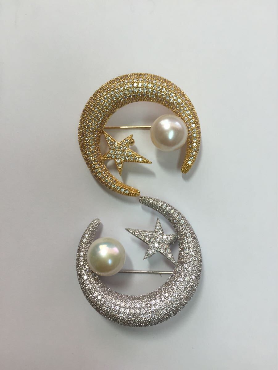 可愛い♪綺麗です♪天然淡水真珠/ホワイトパールダイヤ入リムーン&スターモチーフブローチ♪ペンダントとしても使えます(金具イエローゴールド仕上げ)●玉サイズ: 珠約11.5mm●照り:とても、とても良い●形:扁平丸●キズ(えくぼう):ほとんどありません●金具の素材:ステンレス(ゴールド仕上げ)●石目:スーパージルコニア●ブローチ最大サイズ:約5x4cm●ペンダントとしても使えます!◆真珠豆知識◆長い年月をかけて育まれる稀少な大粒パール