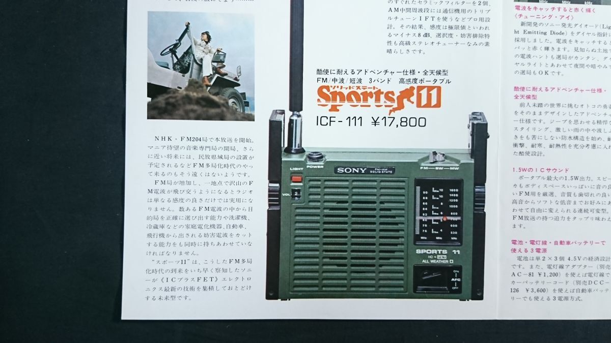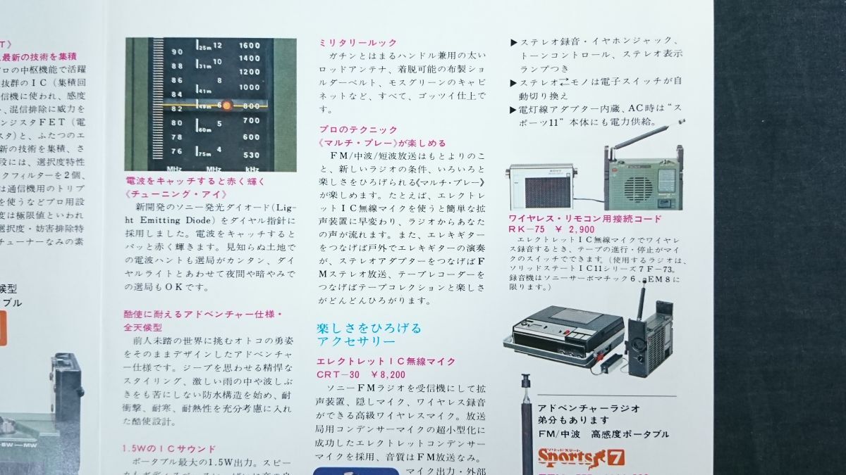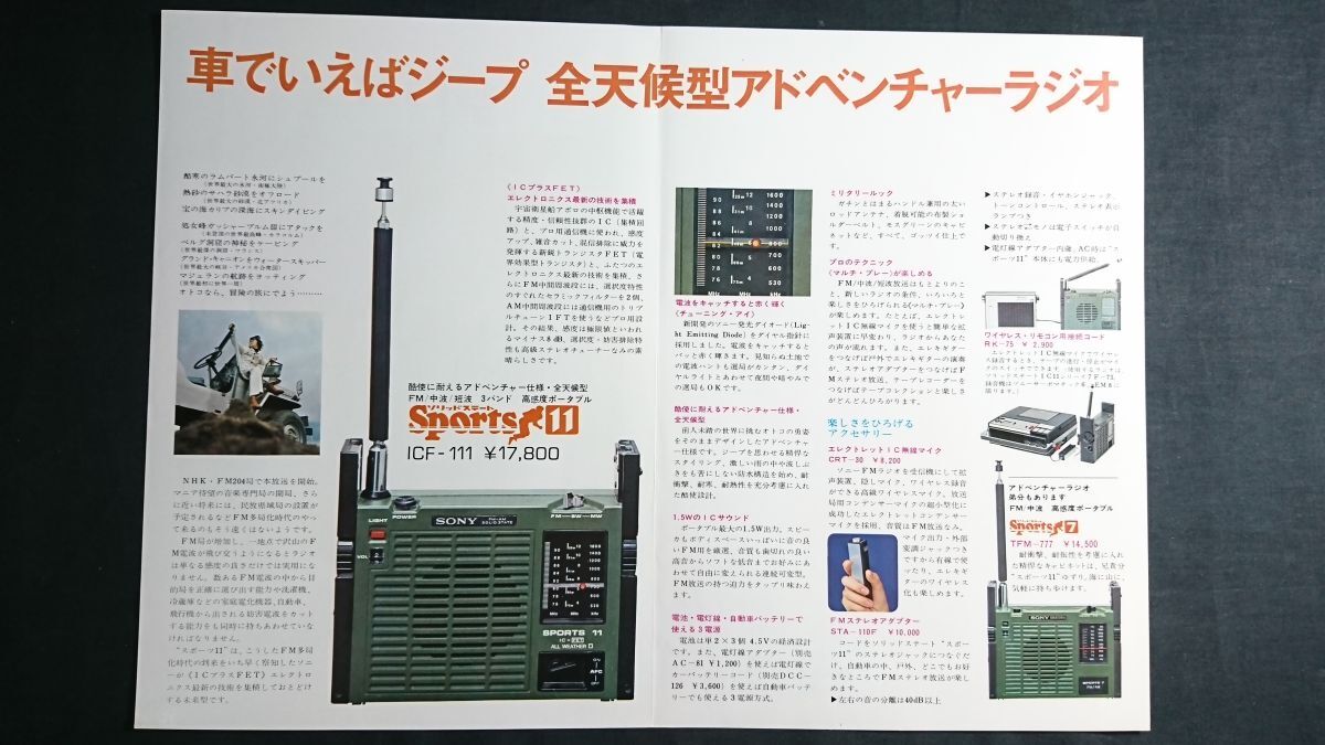 【昭和レトロ】『SONY(ソニー) アドベンチャーラジオ 高感度 ポータブルラジオ ソリッドステート Sports11(ICF-111)/Sports7(ICF-777)カタログ』1970年頃 ソニー株式会社 | |