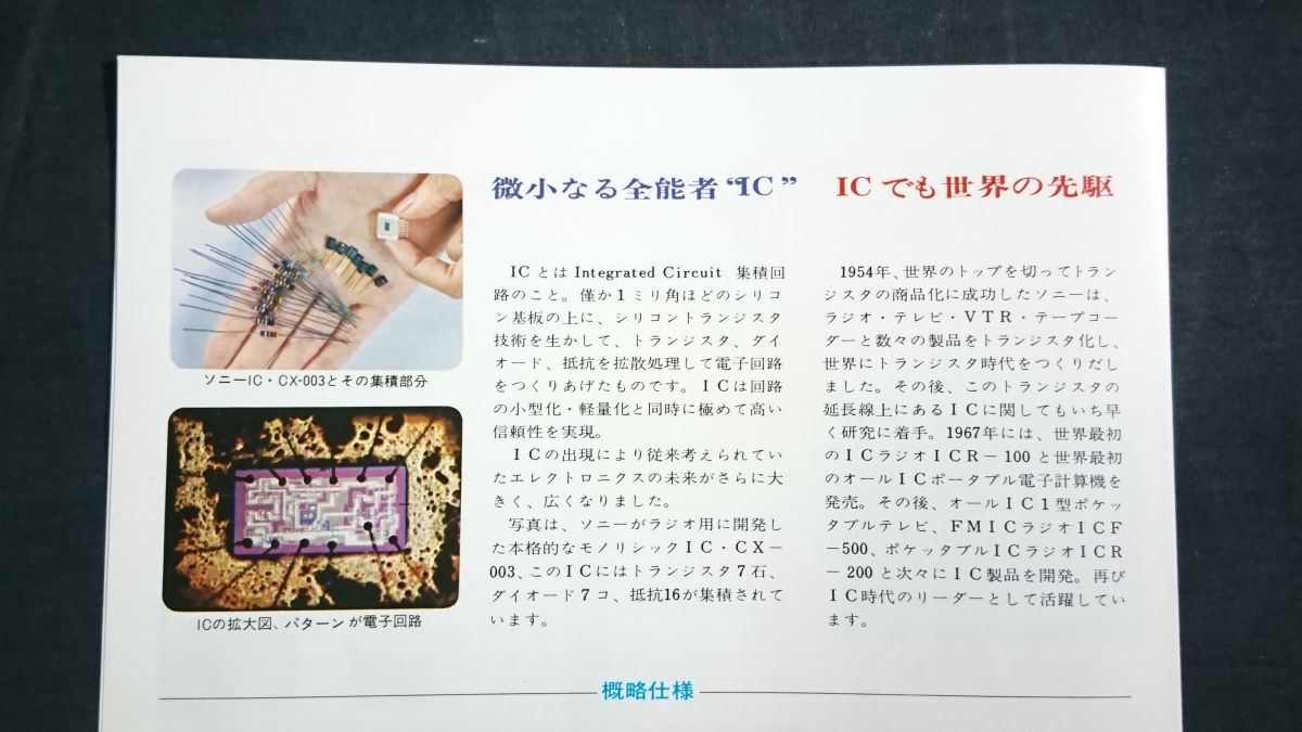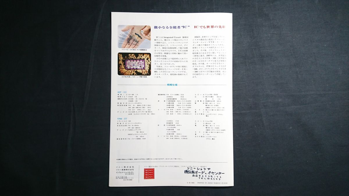 商品説明 | 中古品としての出品です。 【昭和レトロ】 『SONY(ソニー) アドベンチャーラジオ 高感度 ポータブルラジオ ソリッドステート Sports11(ICF-111)/Sports7(ICF-777)カタログ』 1970年頃 ソニー株式会社 ●カタログのみの出品になります。 ●使用感や擦れなどございます。 ●書き込みは、ございません。 ●商品は、付属品も含めて、画像に写っている物がすべてです。 |