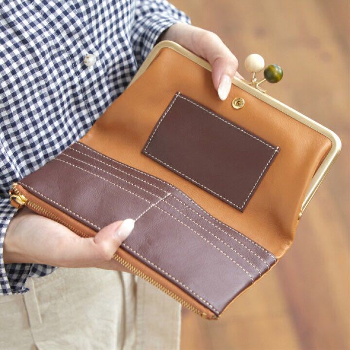 またがま口に使用されているウッドパーツは